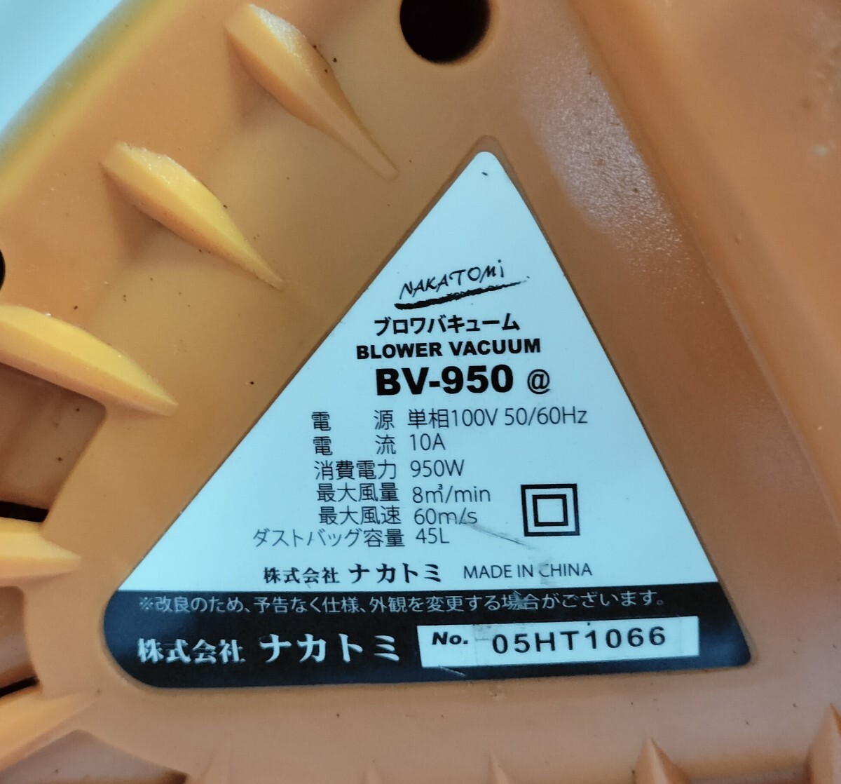 商品名 : NAKATOMI ナカトミ ブロワバキューム. BV-950 動作確認済 中古