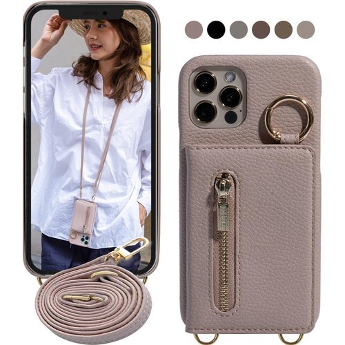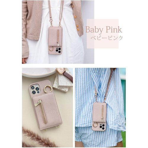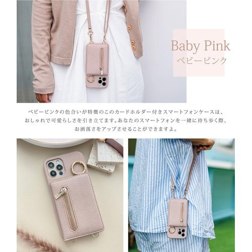 shinyle いphoneケース ショルダー iphone15 pro max ケース ショルダー アイフォン スマホケース 携帯ケース ストラップ付き 背面カード収納 リング付き いphone ケース 背面手帳型 カバーおしゃれ ショルダー 肩掛け 首掛け 斜めかけ オシャレ 可愛い レザー iphoneケース ベビーピンク 1072