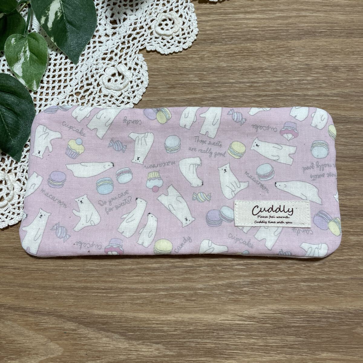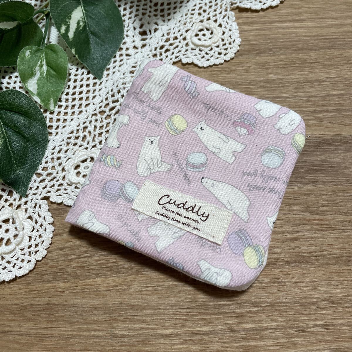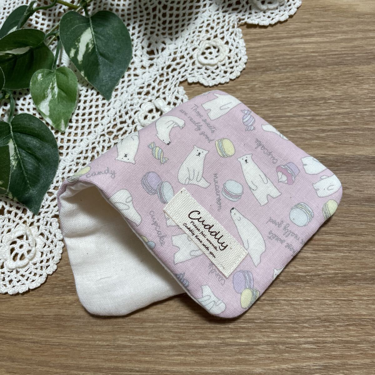 427 ハンドメイド ハンカチ ハーフサイズ シロクマ マカロン