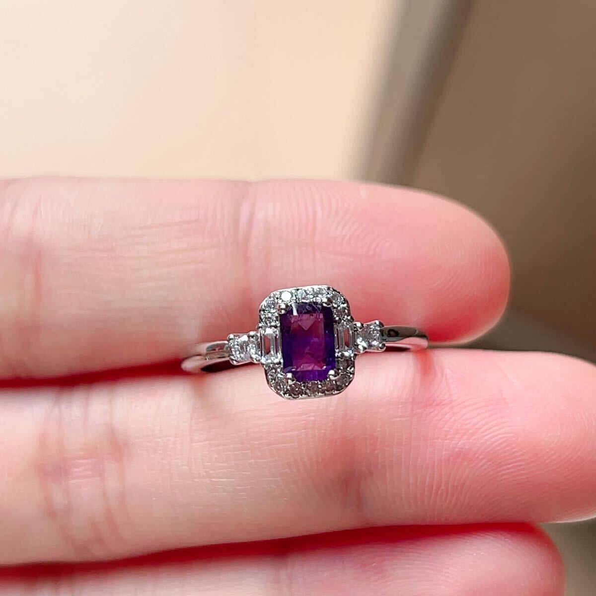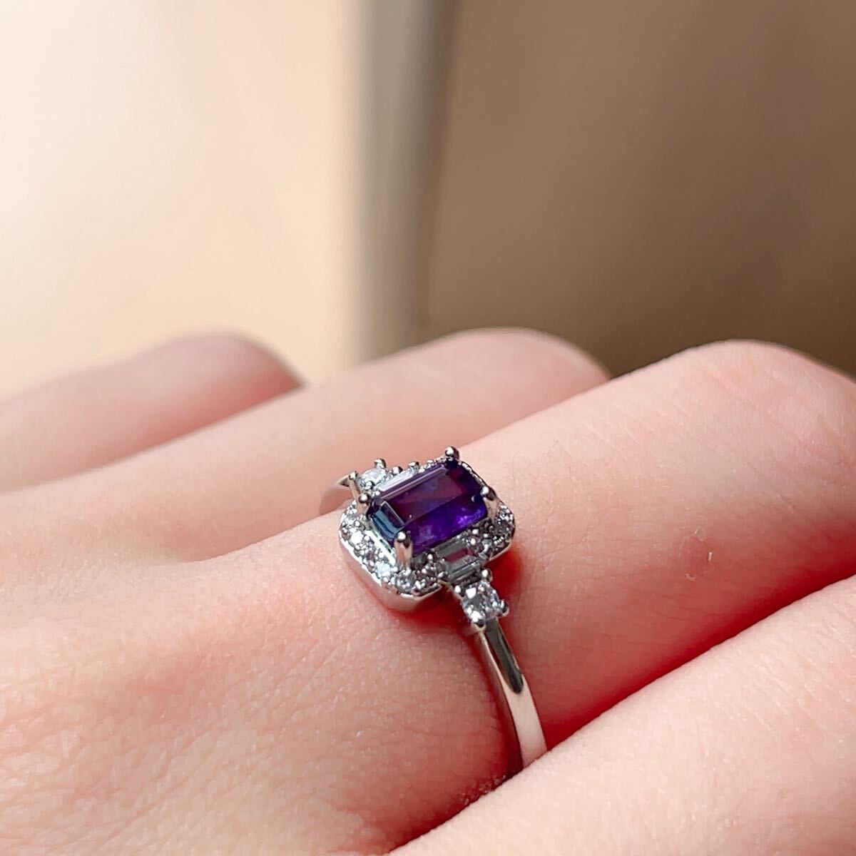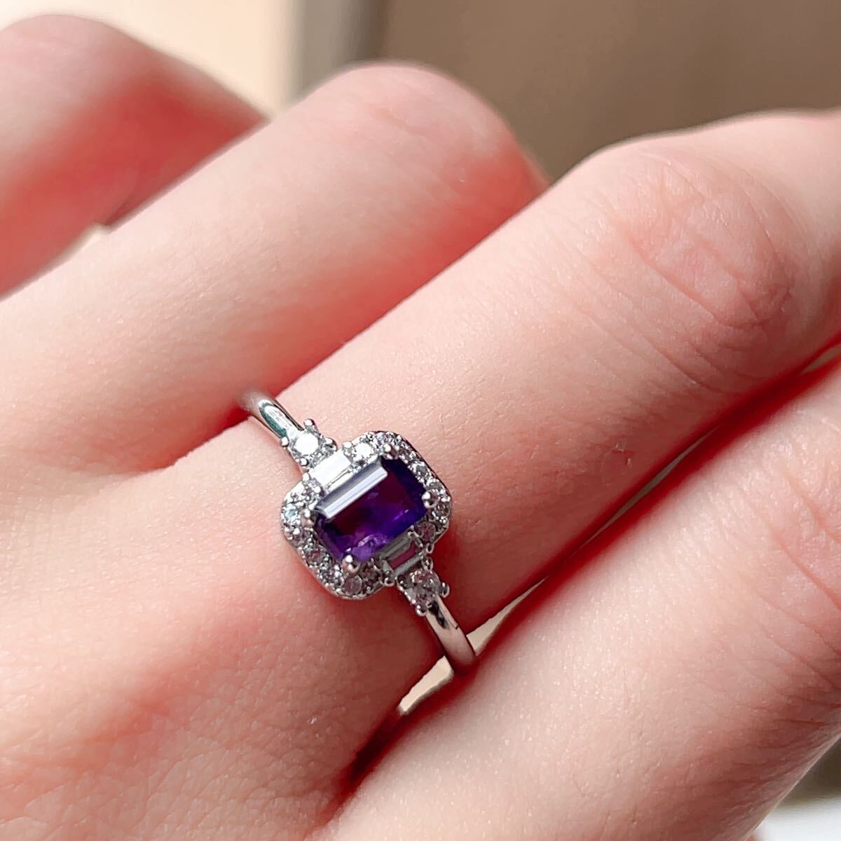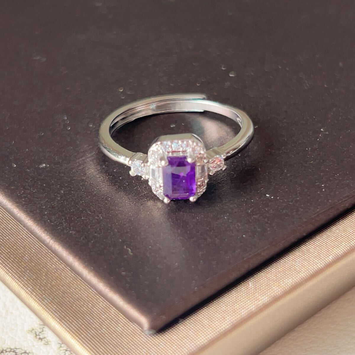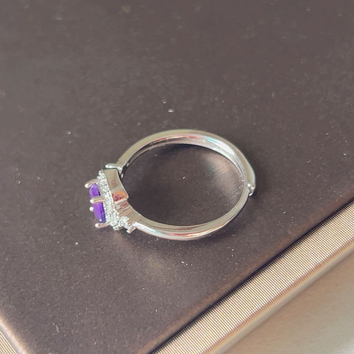 ◇色濃いめ◇紫水晶◇アメジスト◇指輪◇リング◇◇フリーサイズ◇天然石◇パワーストーン◇巾着袋付き◇プレゼントにも040R9411