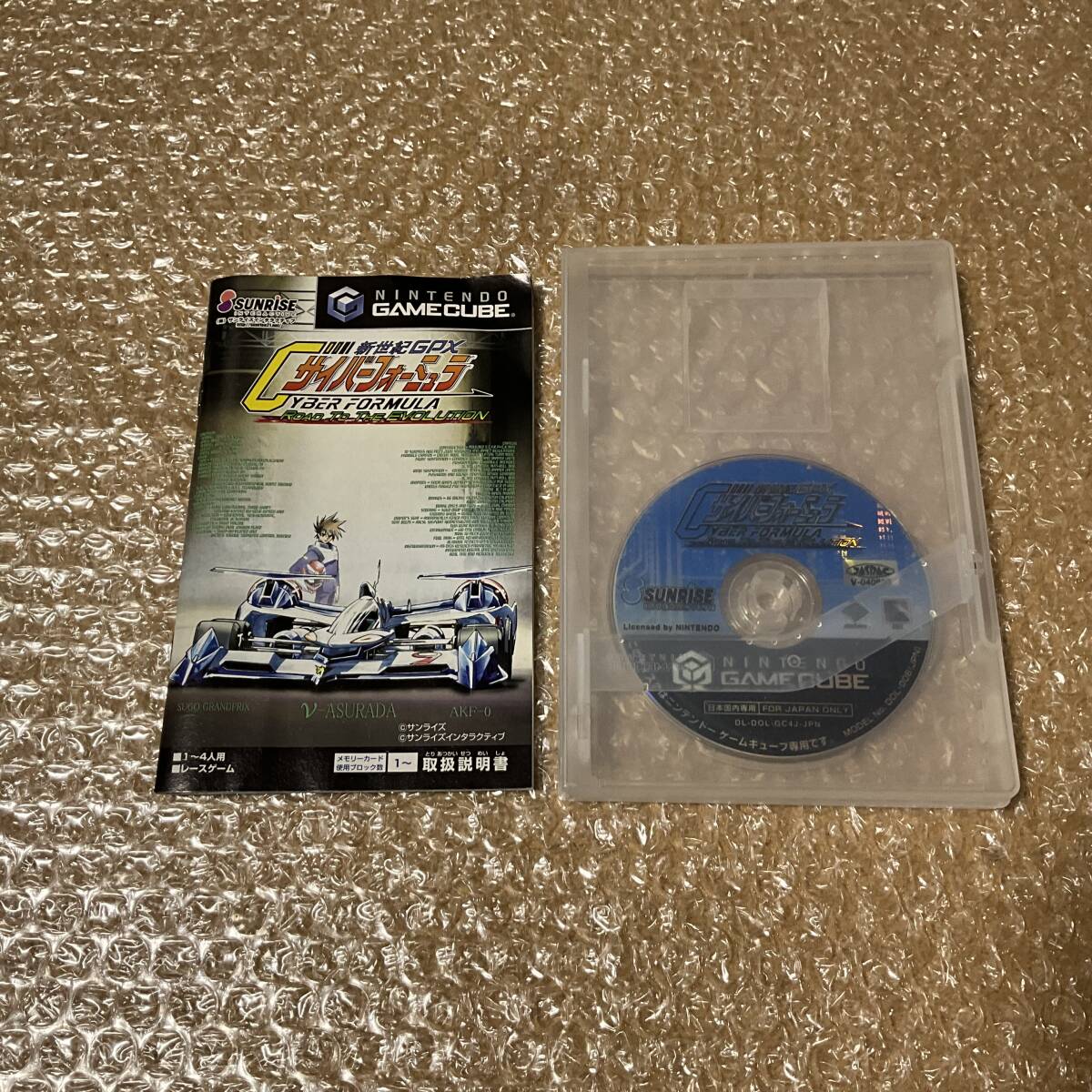 ゲームキューブでも 1作発売しているサイバーフォーミュラシリーズです!沢山発売しているPS2版とは少し違いますので、好きな方は面倒でもゲームキューブでも是非!なかなか見かけないソフトでもあり、中古でも高値ですね!Vap社提供のダイジェスト版アニメーションが収録されているのも熱いです!なんと説明書には、歴代作品紹介やサイバーグッズ紹介、そして久行宏和 氏のイラストワークス、重田智 氏のイラストワークスも掲載されていて、説明書の半分以上のページが紹介です(笑)