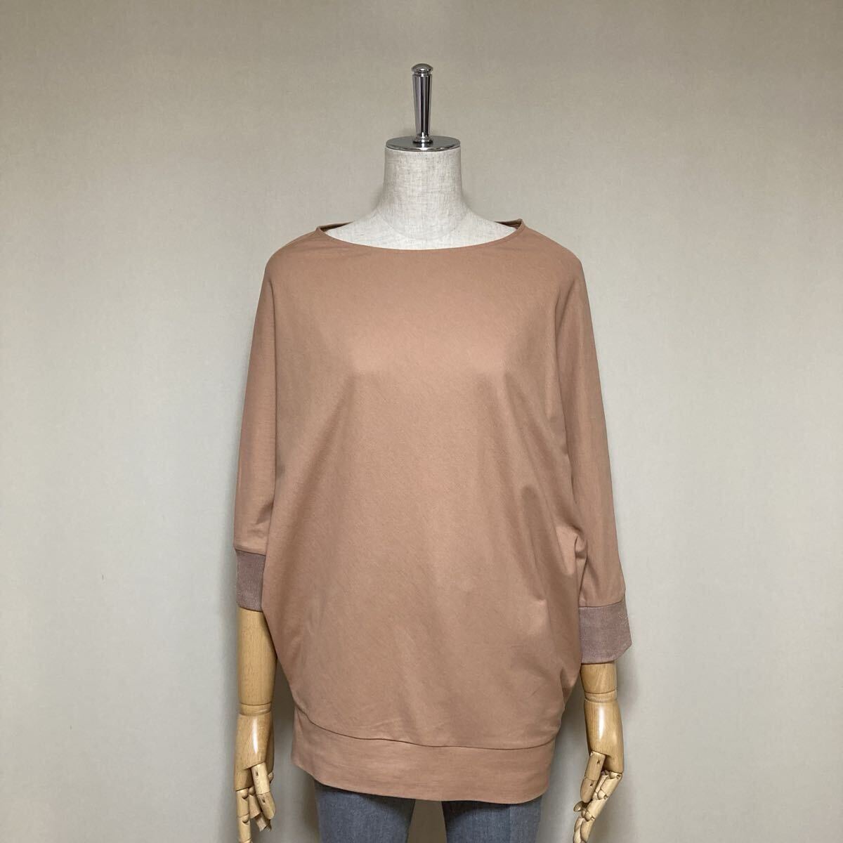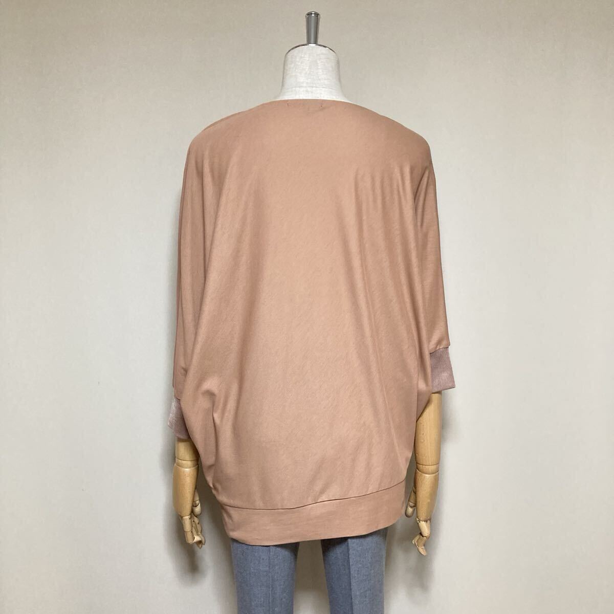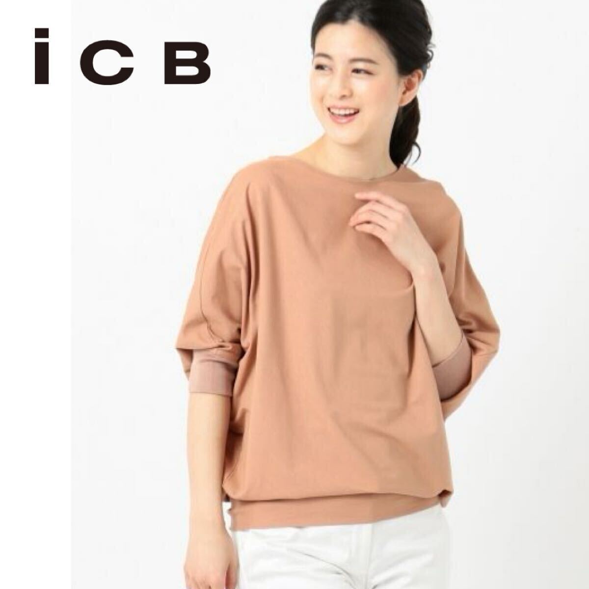 【美品】ICB アイシービー 定価1.4万 洗える Soft Twill Jersey ボリューム カットソー S(Mサイズ相当) キャメル系 レディース トップス