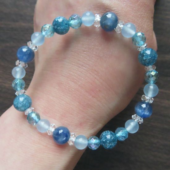 カイヤナイト、アクアマリン、アクアオーラ、水晶のブレスレット | |||