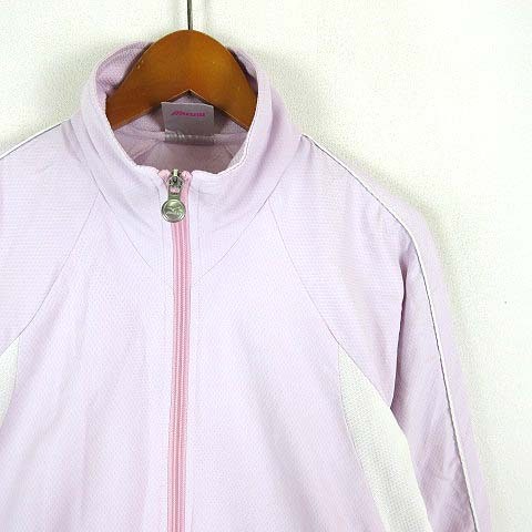 ミズノ MIZUNO ジャケット トラックジャケット ジップアップ ドライ メッシュ ロゴ 切替 配色 長袖 S ピンク オフ白 スポーツウエア