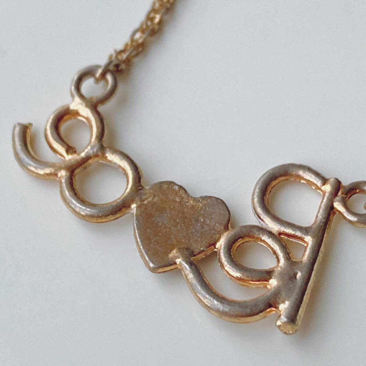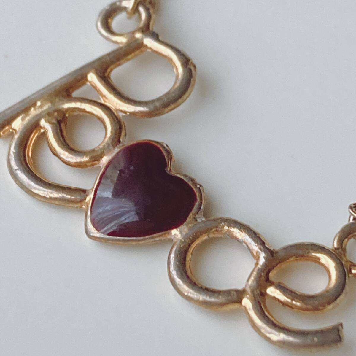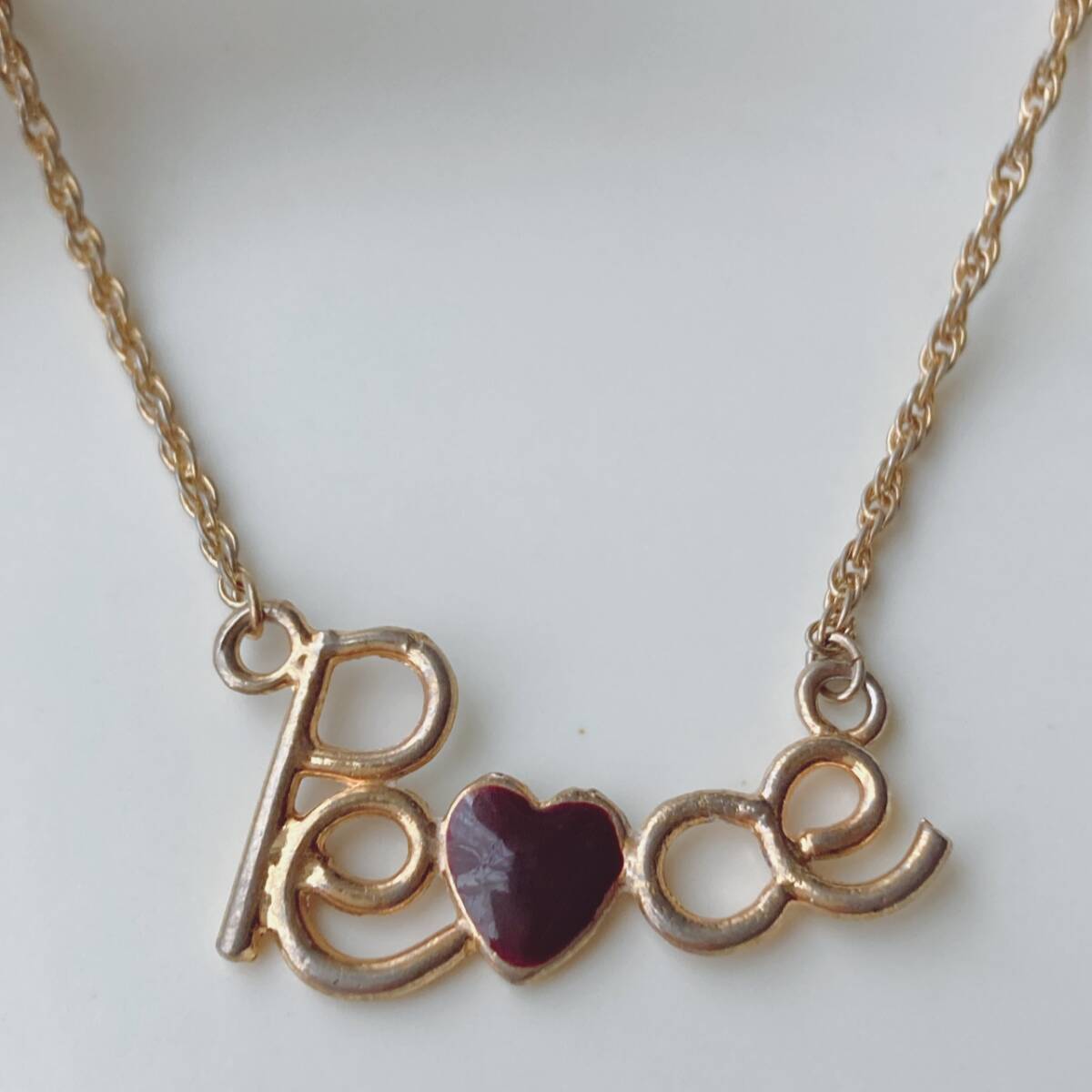 ヴィンテージネックレス ショート ゴールドトーン 英文字 Peace ブラウン ハート☆vintage jewelry accessories F0019