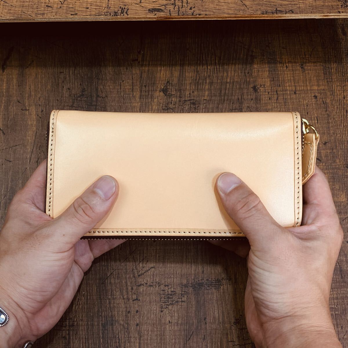 「サドルレザー」シリーズで使用しているヌメ革は、塗料の加工を一切しておりません。その他の表面加工も、ほとんど施していないのが特徴で、新品の状態は「白ヌメ」と呼ばれる、淡いベージュ色です。無染色なので、革本来の色が楽しめます。 使えば使うほど色が濃くなり、最終的には飴色に変化。 新品時と使い込んだ革で、全く違う見た目になります。