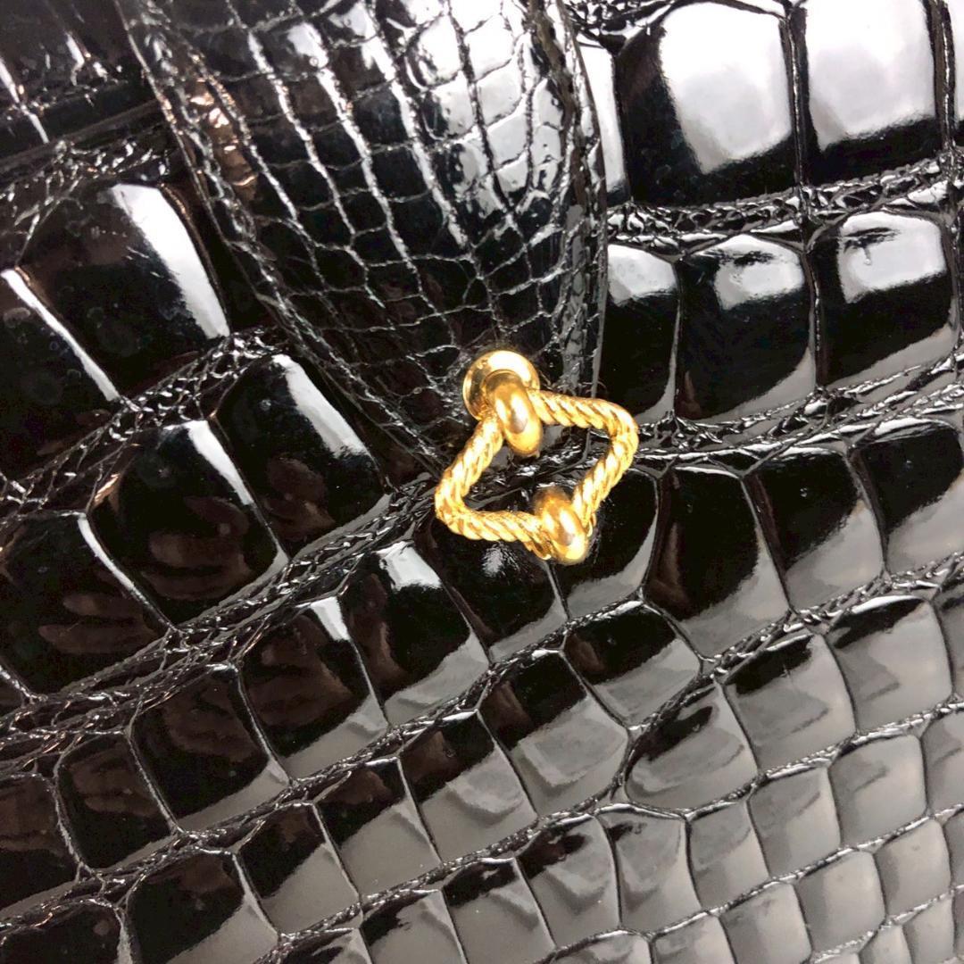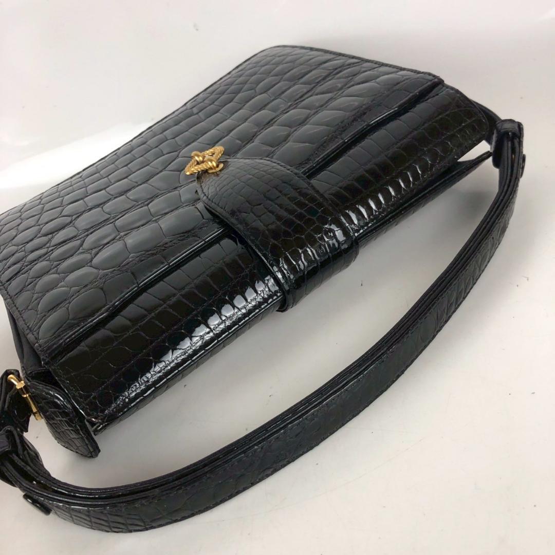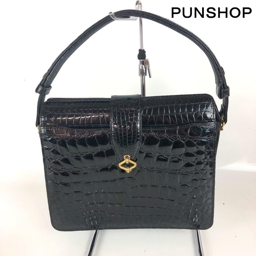 こちらは クロコ レザー トートバッグ ハンドバッグ ブラック レディース ブランド になります。
