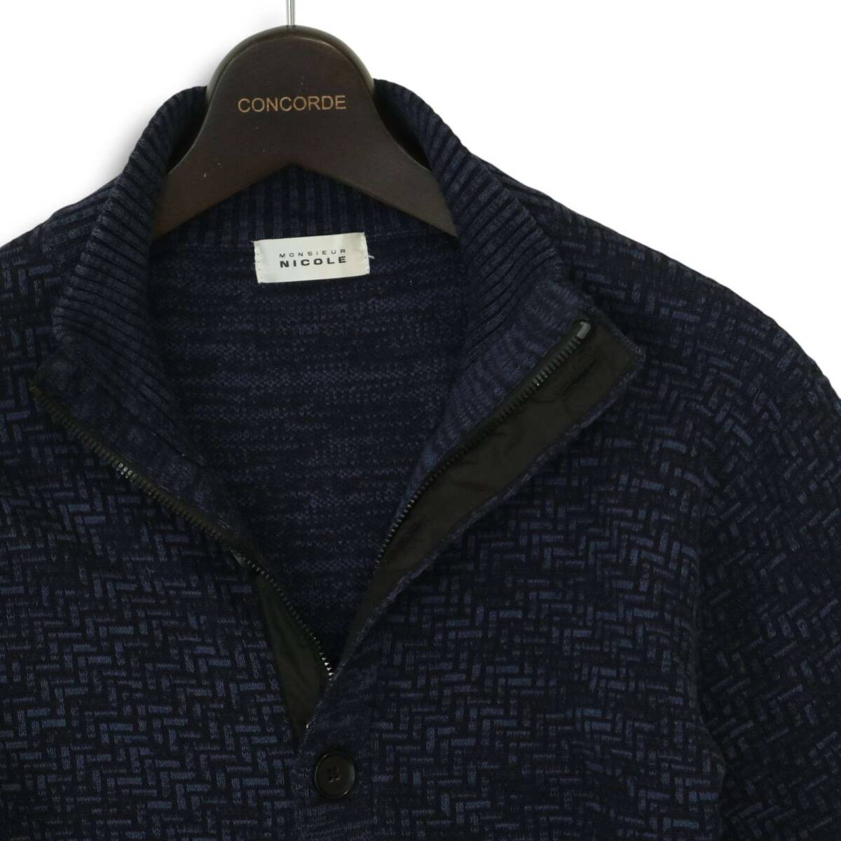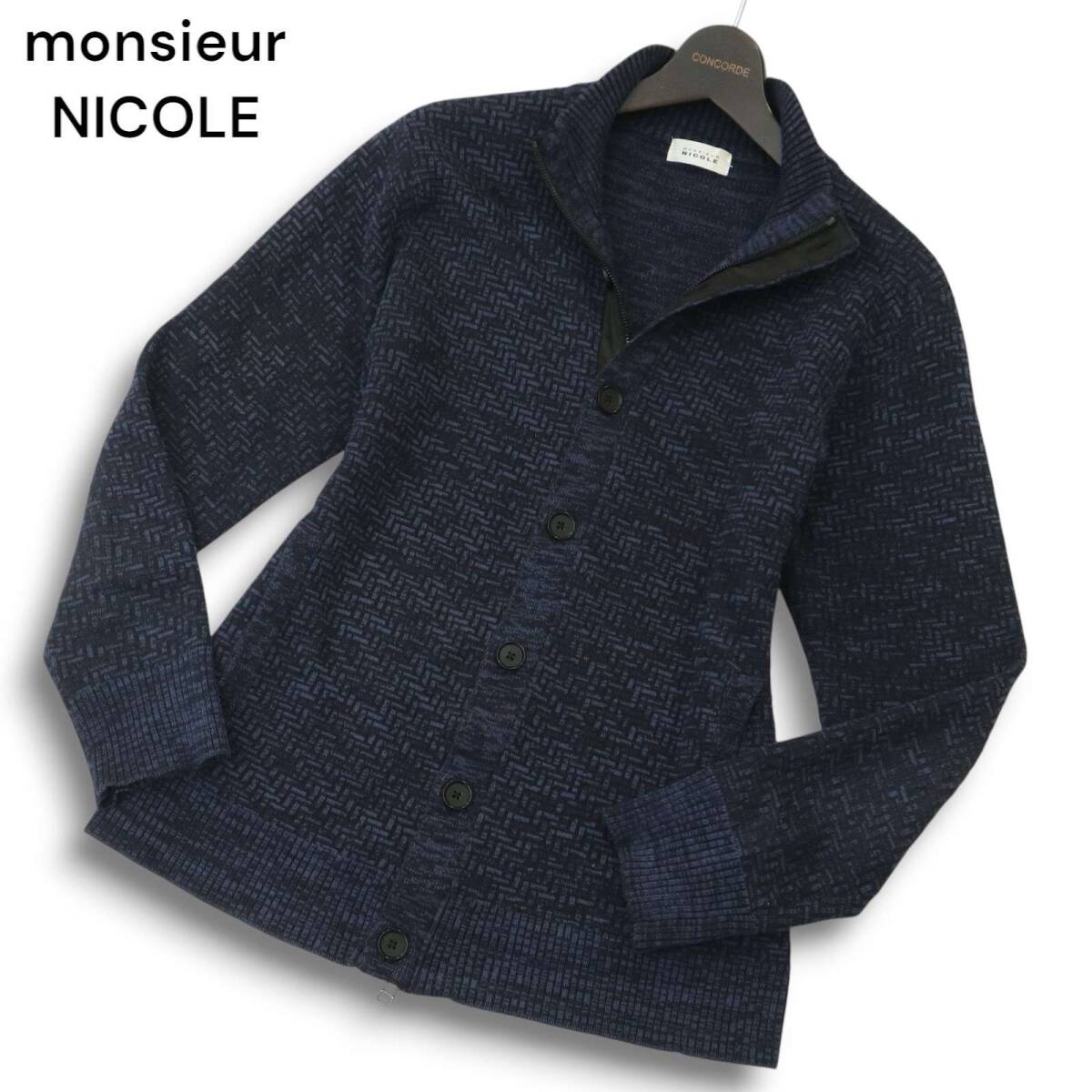 MONSIEUR NICOLE ムッシュ ニコル 秋冬★ スタンドカラー ニット ブルゾン ジャケット Sz.48 メンズ