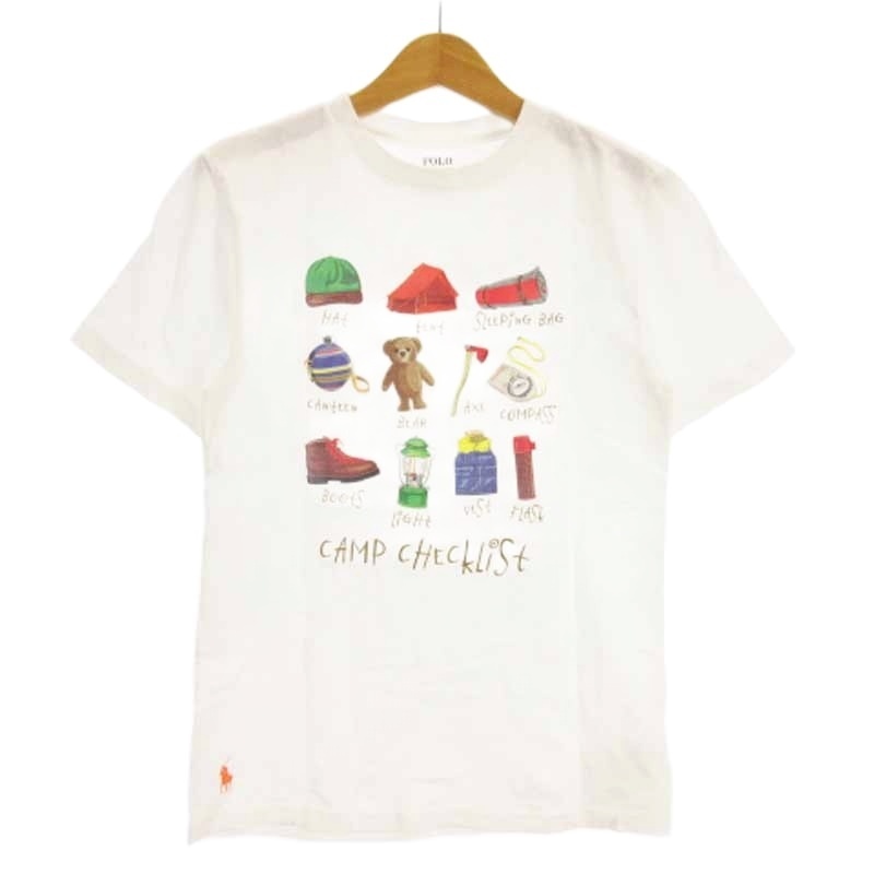 ポロ ラルフローレン POLO RALPH LAUREN Tシャツ カットソー 半袖 クルーネック プリント コットン 白 ホワイト M 10-12 150 キッズ