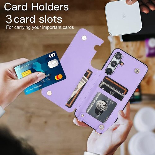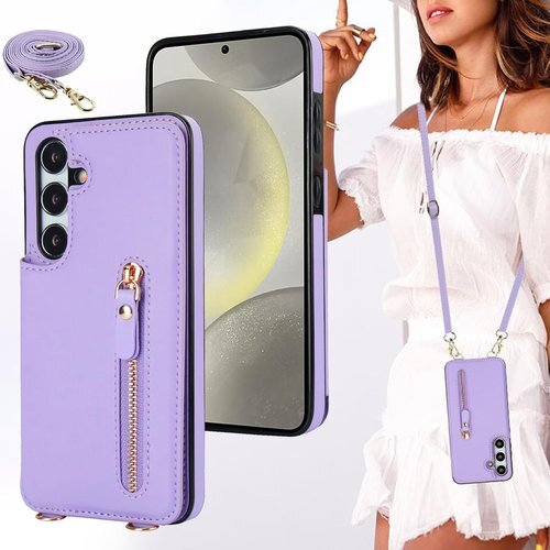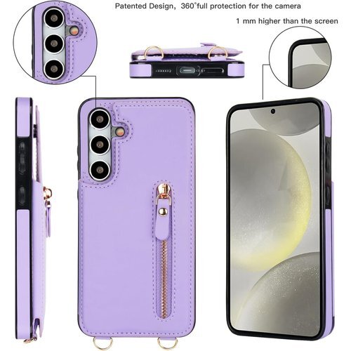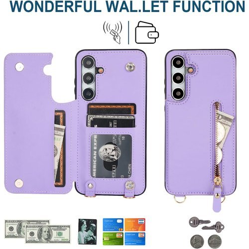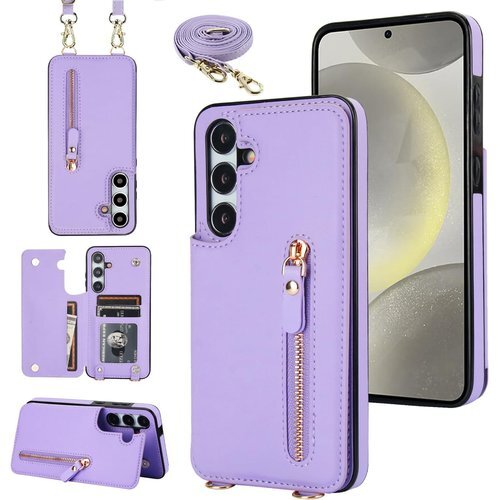 Galaxy S23 FE SCG24 ケース 手帳型 ショルダー ストラップ 背面 フリップ 手帳ケース ギャラクシー S23 FE ストラップケース 紐付き クロスボディ サムスン SCG24 スマホケース ケースカバー 適用 BonwFzin RFID防止 肩がけ 首掛け 斜め掛け 小銭入れ ファスナー型 ストラップ付き ショルダーケース スタンド カード入れ 携帯カバー パープル 1195