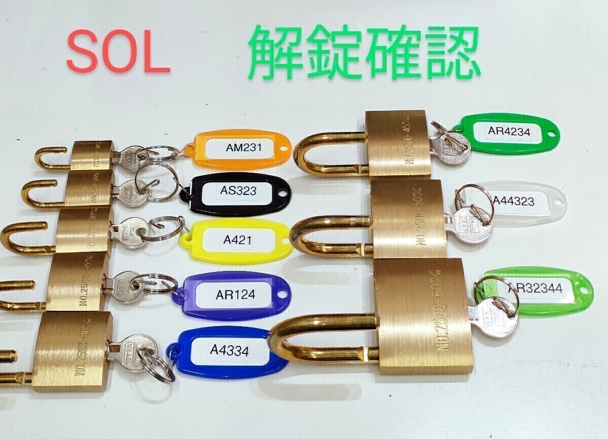 SOL 【合鍵8本セット】 南京錠、同一キー(No.2500/20~60㎜)キータグ付、カギ、ソル、ネコポス便匿名無料発送、SOL南京錠カギ