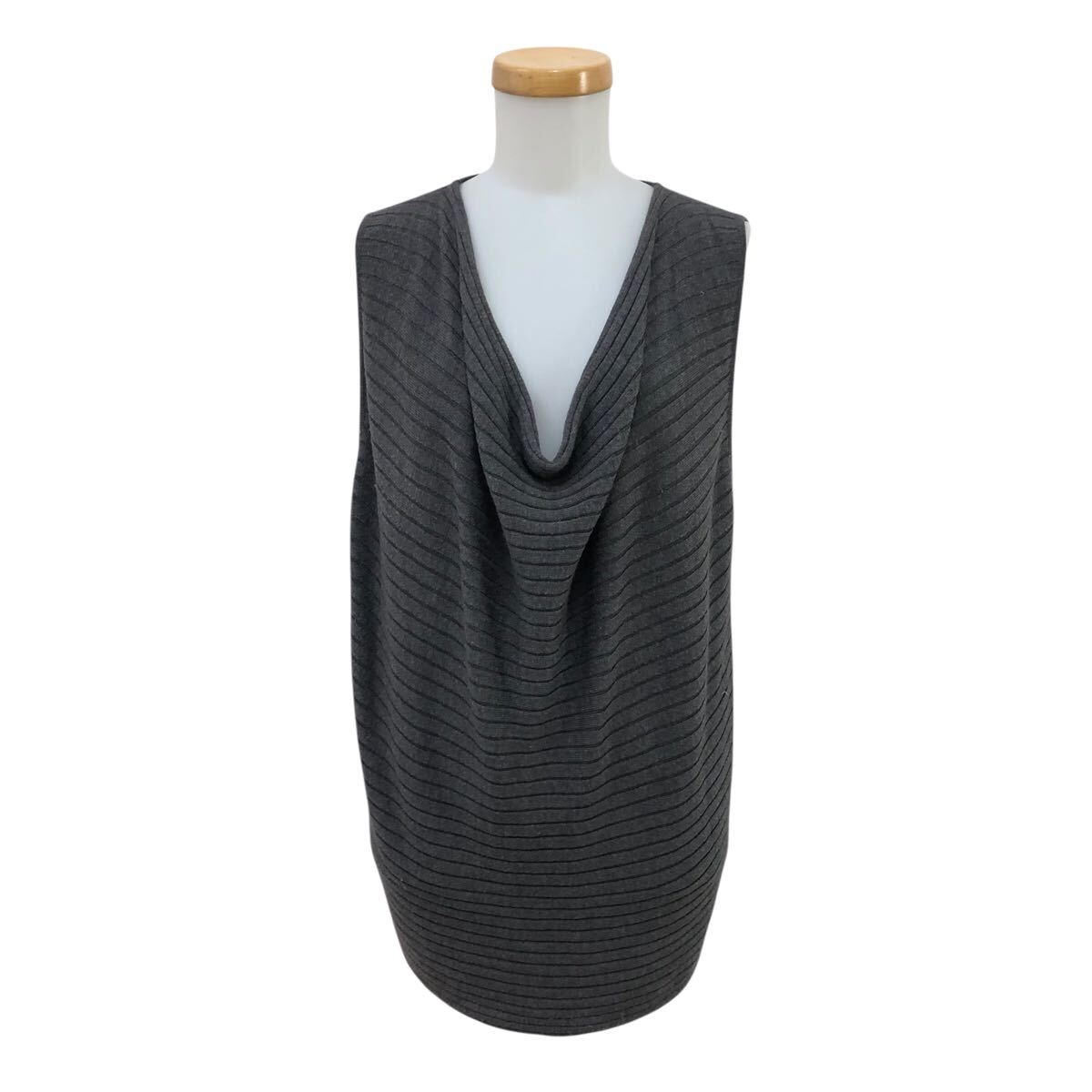 9Nm320-11 Leilian レリアン ドレープ デザイン ノースリーブ ニット セーター ベスト トップス グレー系 レディース