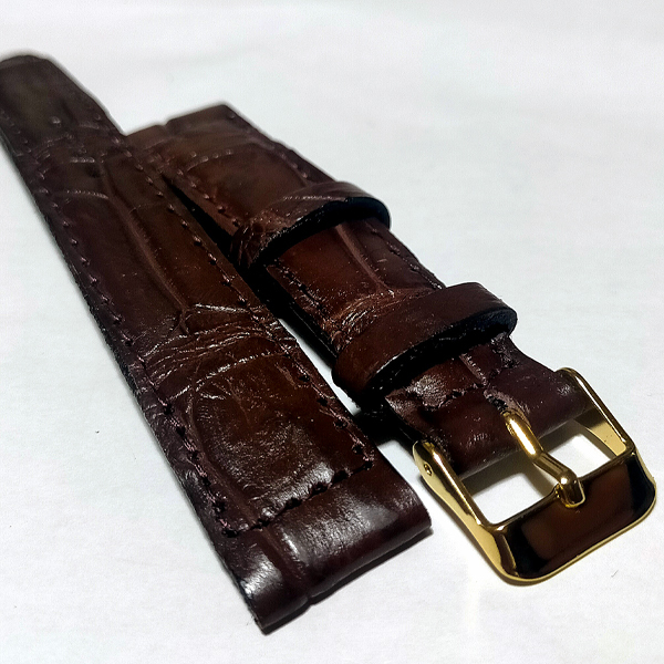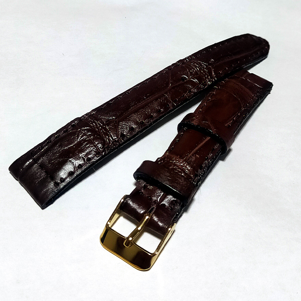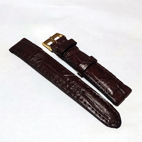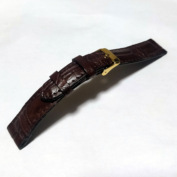18㎜/本革クロコダイル■ こげ茶色■金尾錠 /太筋竹鱗/ 20☆送料込//即決