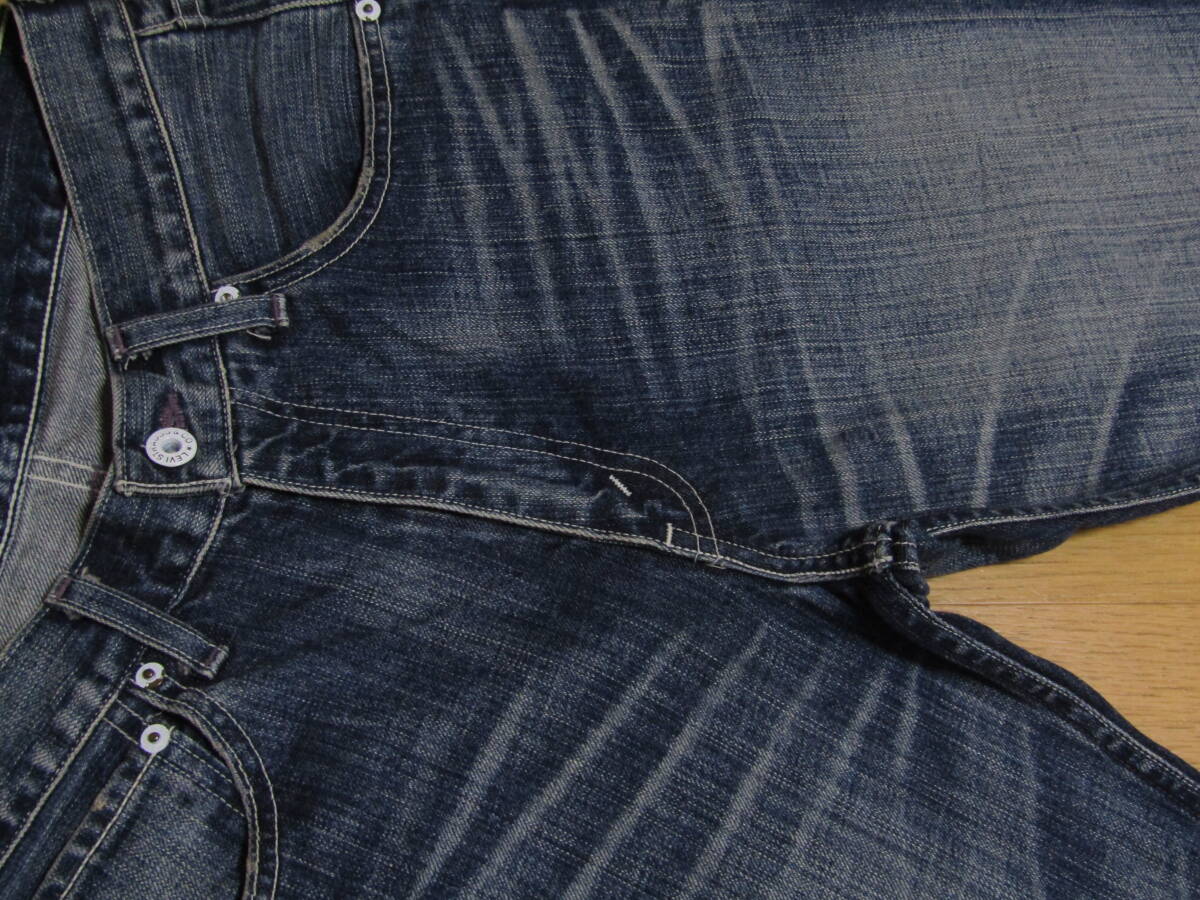 意図的に使い込んだ感のウオッシュ/ユーズド加工もされており、加工によるヒゲ、アタリ、超カッコいい色落ちなどヴィンテージ感あるいい雰囲気です。バックパッチ、その他に使用感もありますが全体的にしっかりしており、まだまだお使いいただけます。