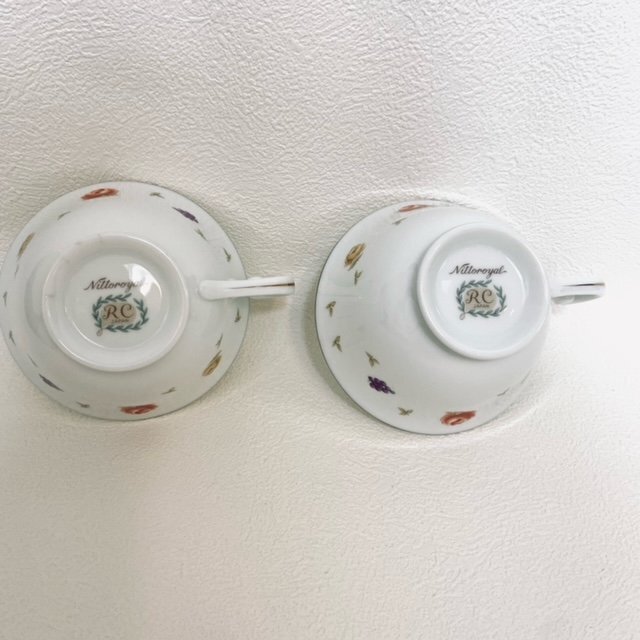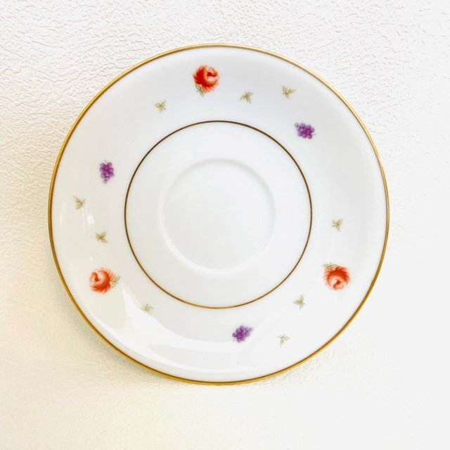 | Noritake ノリタケ カップ&ソーサー 2客セット+ソーサー2枚 薔薇と葡萄 ホワイト ティーカップ 金縁 陶器 来客 おもてなし |
