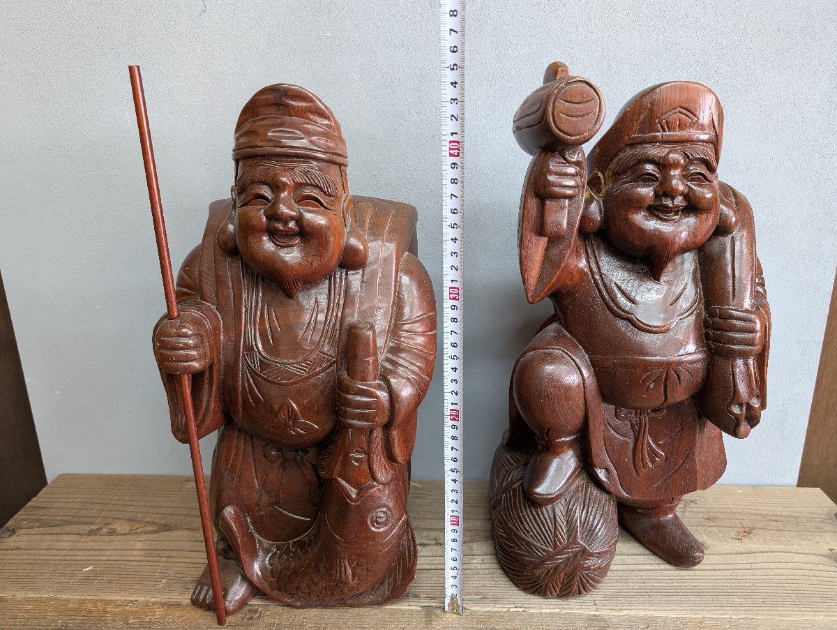 中古★七福神★恵比寿★大黒天★木彫り★開運★H46cm w20cm★セット