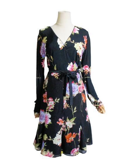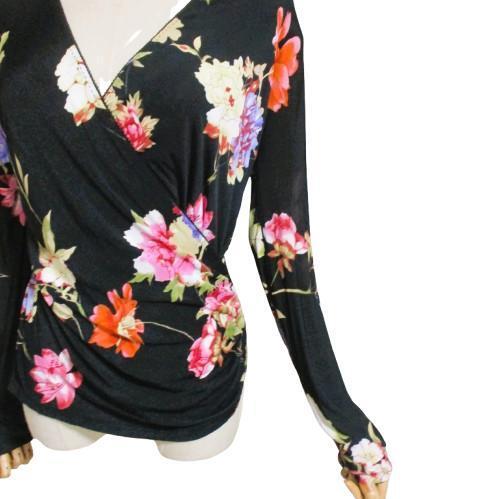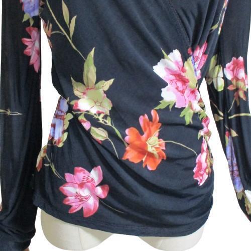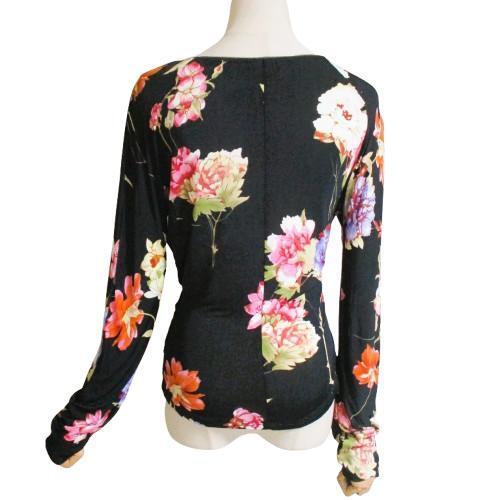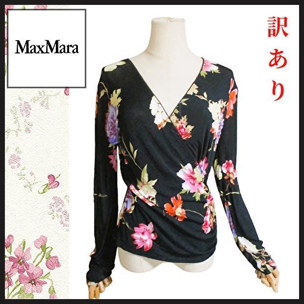 【マックスマーラ】カットソー 花柄 フラワープリント ストレッチ  長袖 訳有 MaxMara 黒 ブラック 伸縮性 手洗い 匿名発送