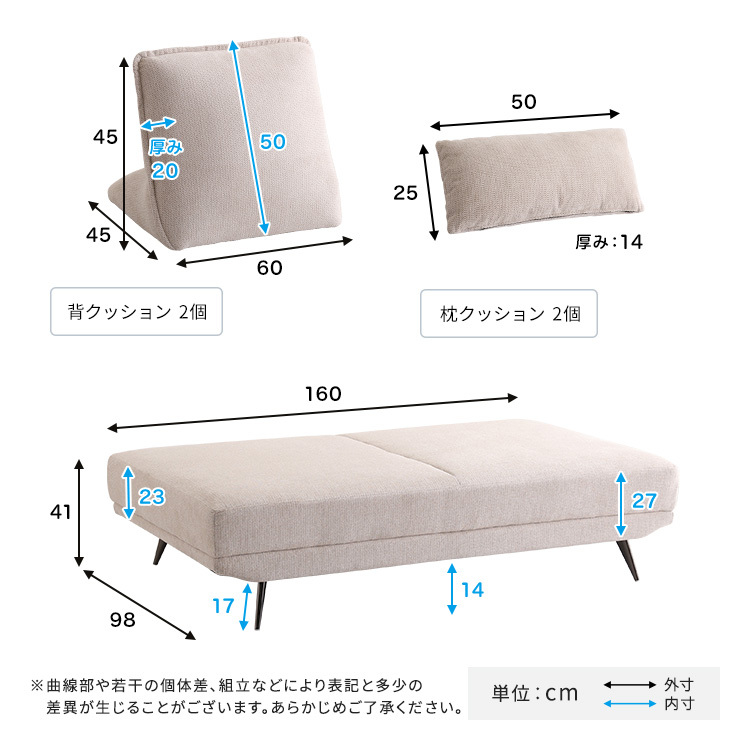 ソファ本体:(約)W160×D98×H41cm