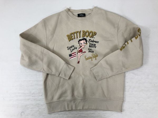ベティブープ Betty Boop レディース キャラクター アメカジ 古着 袖プリント 裏起毛 スウェット トレーナー トップス M ベージュ です。