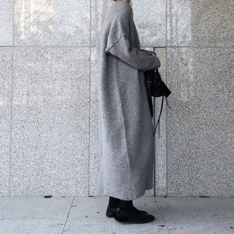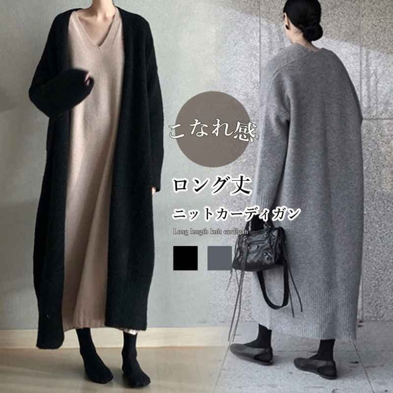 一枚さらりと羽織るだけで、秋冬らしいコーデに仕上がる便利なロングニットカーディガン