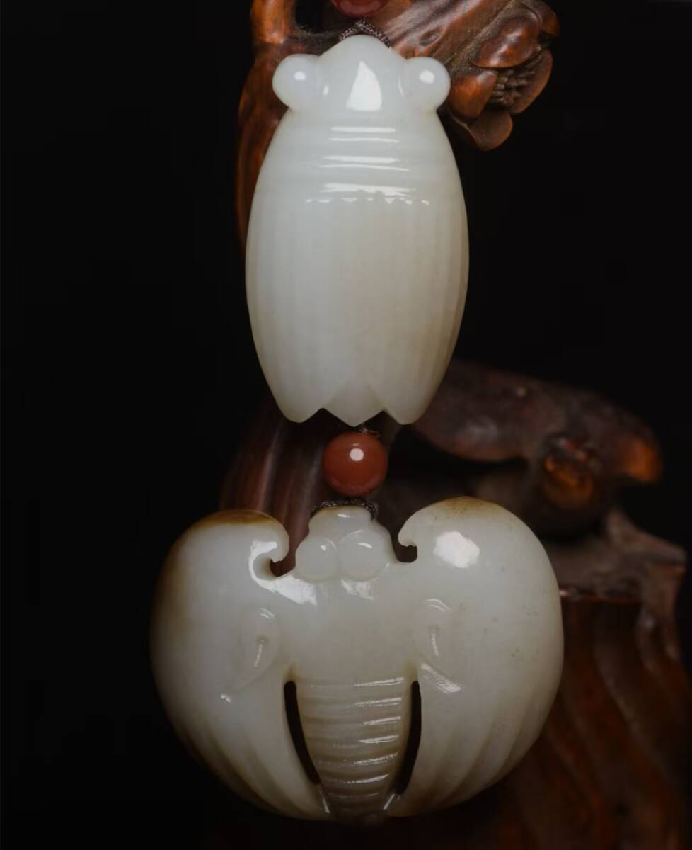 古玉 和田玉 秘藏 清代 白玉 金セミ・フォッペ 唐物 古玉彫 天然石 稀少珍品 古美術 古賞物 古置物 旧蔵 901