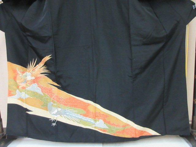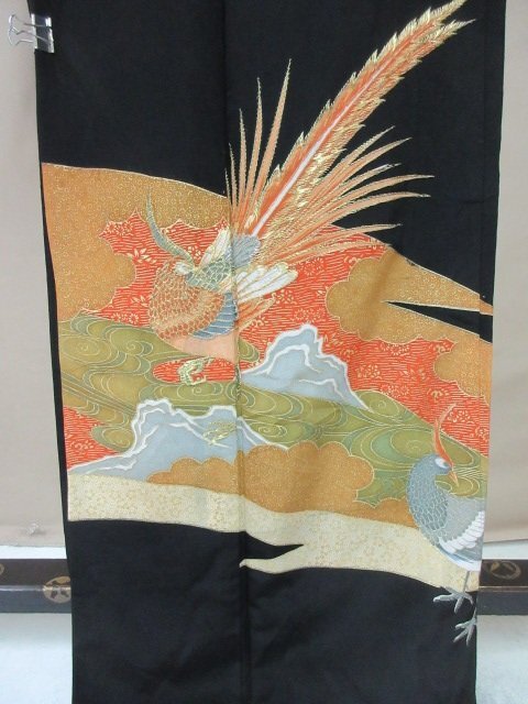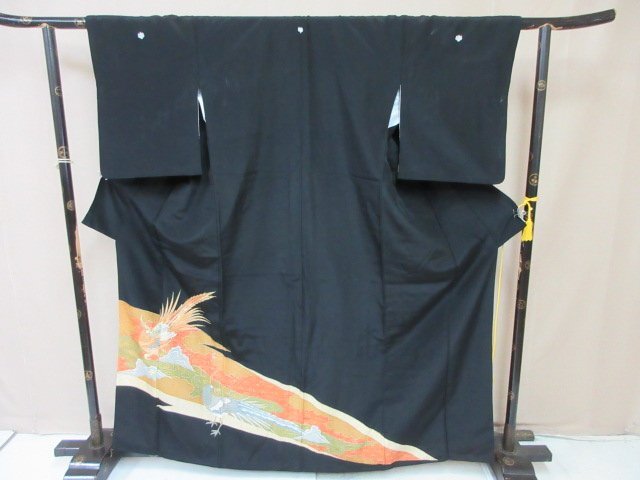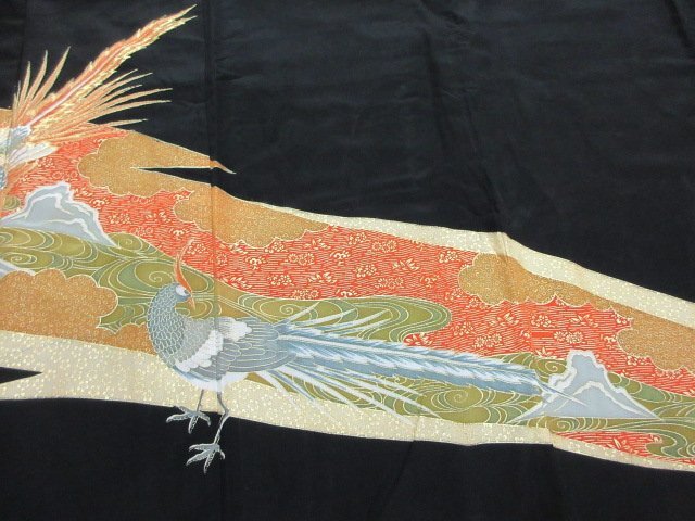 | 商品名 | 1円 中古 留袖 正絹 着物 縮緬 式典 和装 比翼付 孔雀 雲 草花 観世水 高級 袷 身丈152cm 裄66cm【夢職】★ |