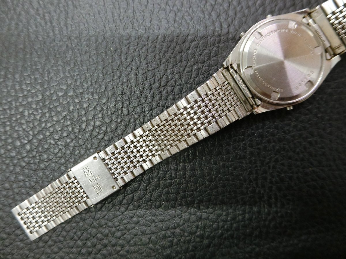 | 商品説明・コメント | カシオ CASIOの腕時計です。 型番は88CR-17となります。 駆動方式はクォーツになりますが現在では動いておりません。 しかしながら電池交換をして動く保証は出来ません。 サイズはプッシュ含まずの横幅が33mm、ラグからラグ迄の縦の幅が36.7mm、厚みが7.8mm程度で御座います。 素人計測になりますので御参考迄にして下さい。 今となっては先ず手に入りませんし中々市場に出回る事が有りません。 状態は年式相応では御座いますがベースとしてや部品取り等に使って頂いても良いでしょうし年式相応でそのまま使っても良いかもしれません。 当時物のビンテージに理解の有る方にお勧め致します。 あくまでも部品取りやオーバーホール前提として下さい。 商品の適合や仕様の詳しくは御自身でお調べ頂きます様にお願い致します。 古い物になりますので経年の修理で非オリジナルの部品が使われている事も御座いますので全てに於いてオリジナルを保証する物では御座いません。 写真では御確認頂けない不具合等もある前提で原則ジャンク扱いにて御考慮下さい。 上記の通り、原則瑕疵担保責任はお受け致しませんので御了承下さいます様御願い致します。 上記の条件を御理解頂けない方の入札はお断り致します。 商品状態 | E | 注意事項 | ■ご質問がありましたらQ&A若しくはメール迄宜しくお願い致します。 | ■原則、中古ジャンク扱いの認識を頂ける方・極端に神経質で無い方・身勝手で無い方での御入札お願い致します。 ■例外なく汚れ、割れ、劣化、社外品による補修、油脂類切れ、折れ、腐食、破損、欠損、欠品、色褪せ、錆、機能的な欠陥は有るだろう前提でジャンク扱いでオーバーホールベースのノークレーム、ノーリターンでの取引条件とさせて頂きます。 ■入札の際は、商品説明・内容・写真を良く御確認の上、自己責任に於いて御入札下さい。 ■画像の色は写真の撮影状況により現物と異なる場合が御在います。 その旨を了承戴ける方のみの御入札をお待ち致します。 ■オークション終了から3日以内の御連絡頂けない場合は落札者都合にてキャンセルとさせて頂きます。 その際、yahooより自動的に『非常に悪い』の評価が付きますので御了承下さいませ。 ■商品の発送は入金確認後、4~7日のお時間を頂きます。 ■オークション終了から1週間以内の御入金でお願い致します。 ■新規のID方の悪戯入札防止の為、評価の無い新規の方・評価に著しく不安が在る方の御入札はお断り致します。 新規IDの方でどうしても入札したい方は質問欄より購入の意思を示して頂いた上で御入札下さい。 購入の意思を示さず入札頂きました場合は入札取り消しをさせて頂き今後、弊社商品への閲覧・入札は御断り致します。 ■Seller will not ship internationally. |