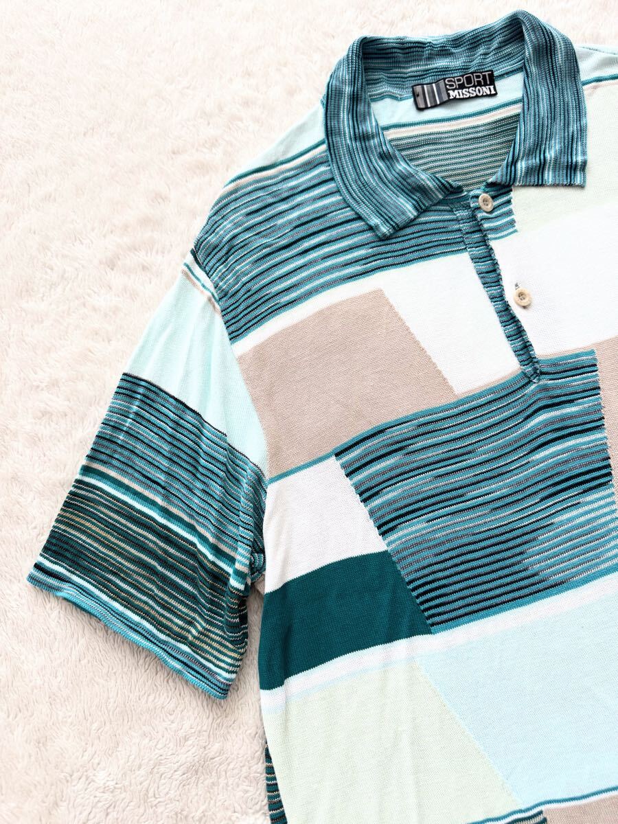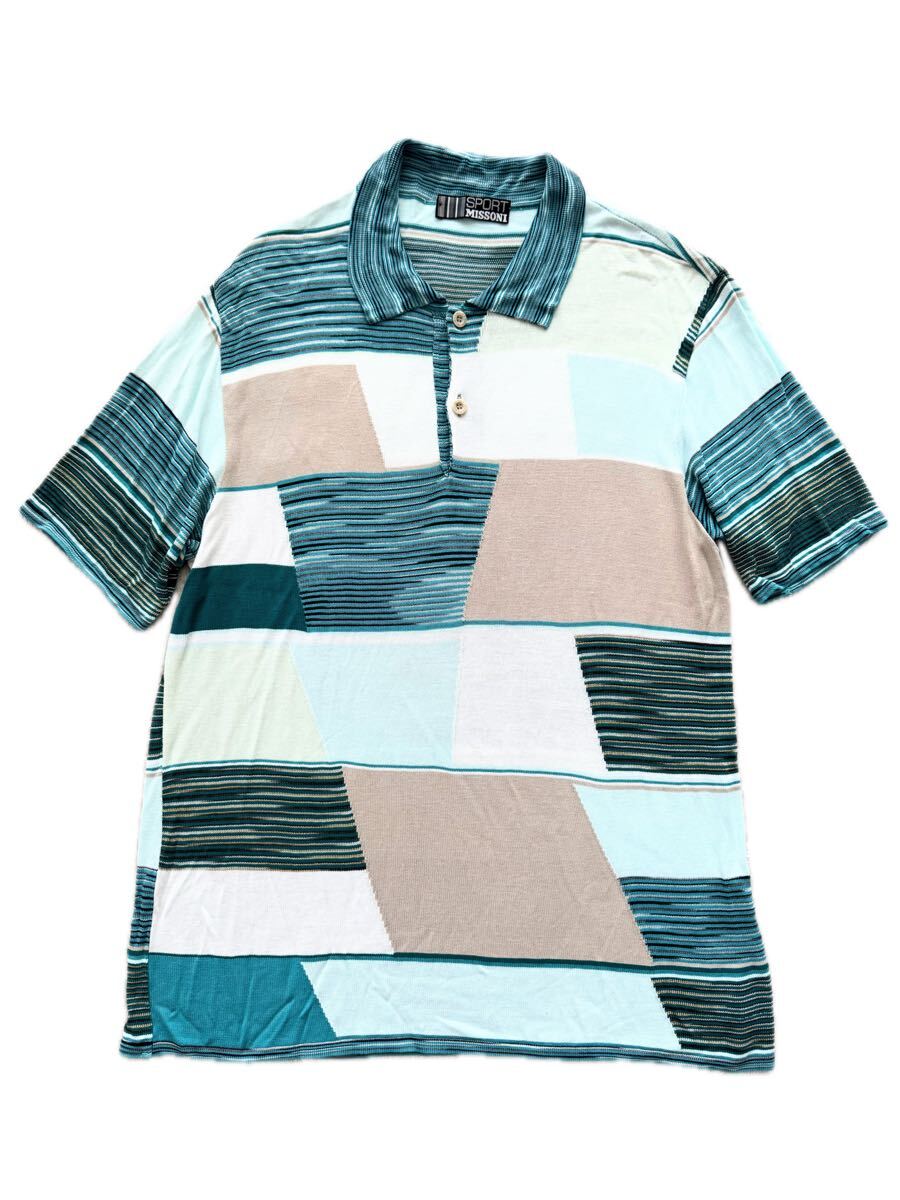 SPORT MISSONI size50 イタリア製半袖ポロシャツ レーヨン メンズ ブルー ベージュ 白 黒 ミッソーニ