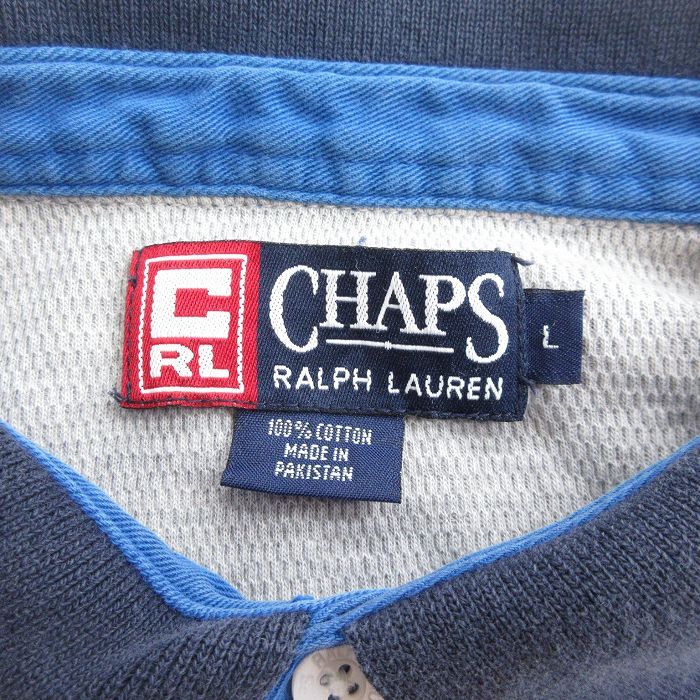 【商品名】 XL★古着 ラルフローレン チャップス 長袖 ブランド ポロ シャツ メンズ 90年代 90s ワンポイントロゴ 大きいサイズ コットン グレー 霜降り他