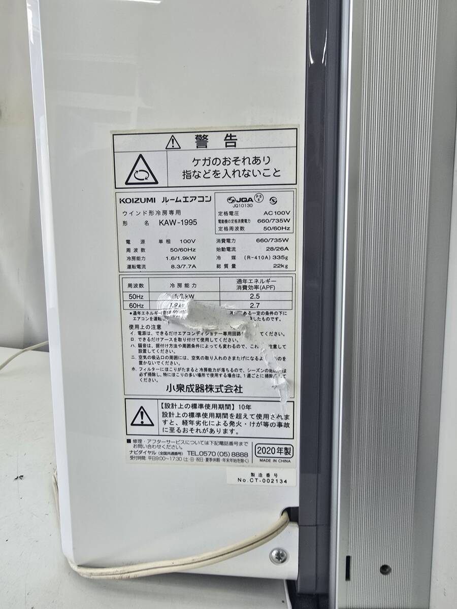 ■5279■ KOIZUMI KAW-1995 ウインドエアコン リモコン&窓枠付 2020年製
