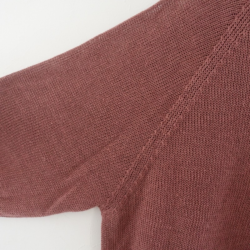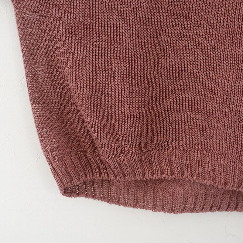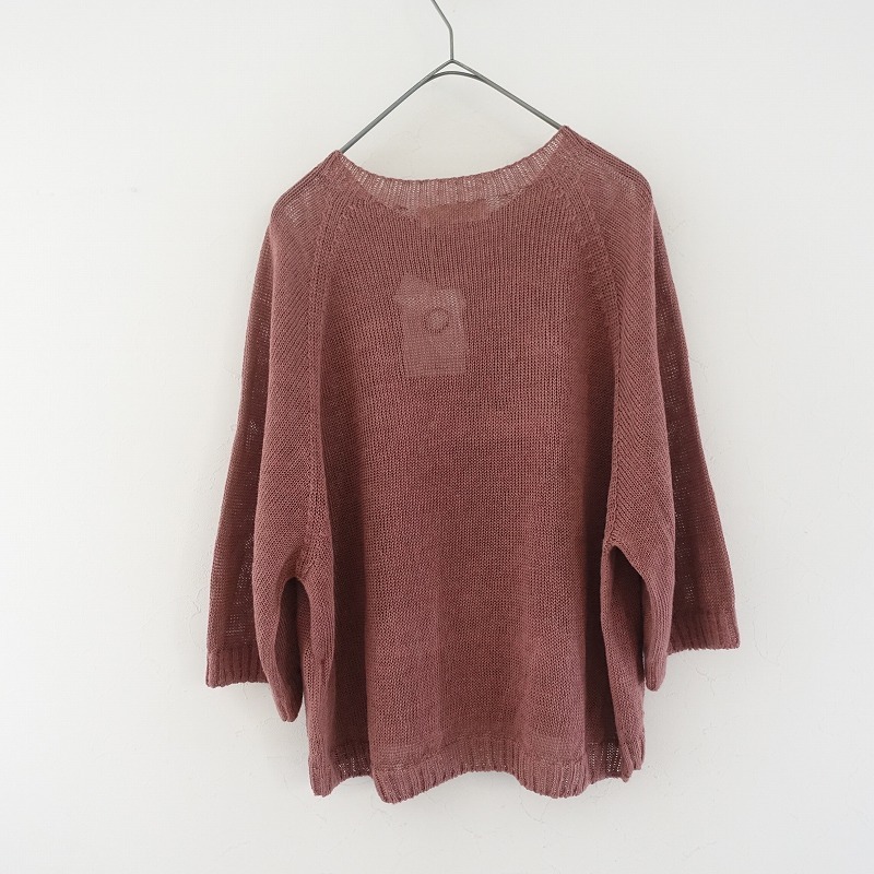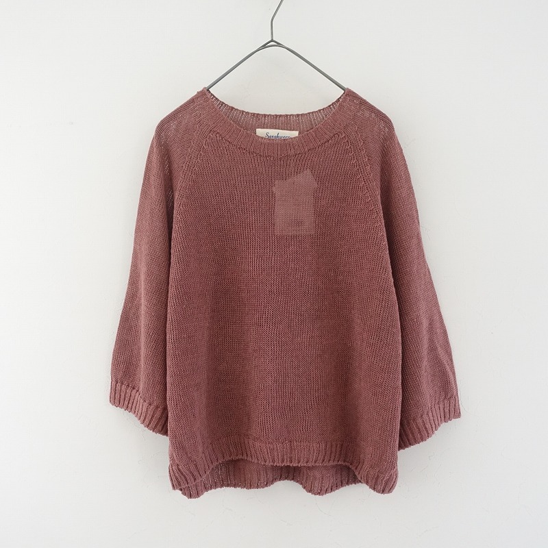 SARAH WEARのリネンンニットハーフスリーブプルオーバーです。カラーはくすんだローズピンクで、ローゲージ編みのリネンニット素材で仕立てられております。ラグランスリーブデザインで、シンプルなアイテムです。定価(メーカー希望小売価格)19,800円 税込みの商品です。 |