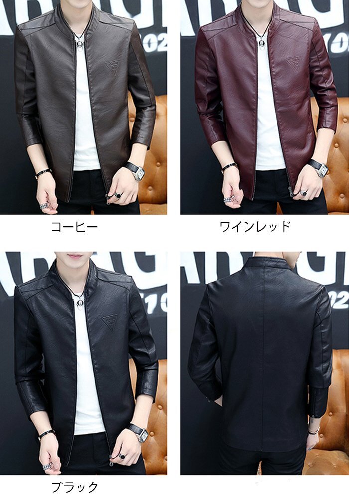 立ちネック レザー ジャケット メンズ ブルゾン アウター バイク ライダースジャケット アウター ショート丈 防風★3色選択可/M~4XLサイズ