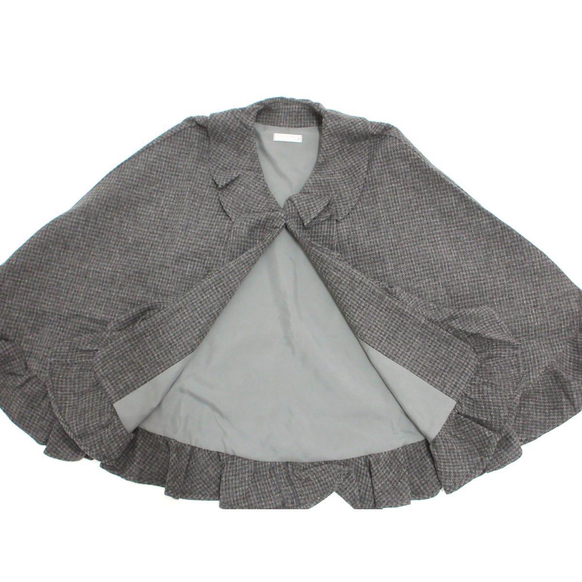 さらっと羽織れるケープタイプのコートです。フリルのように生地があしらわれており、着物姿に可愛らしい印象を添えてくれるお品です。
