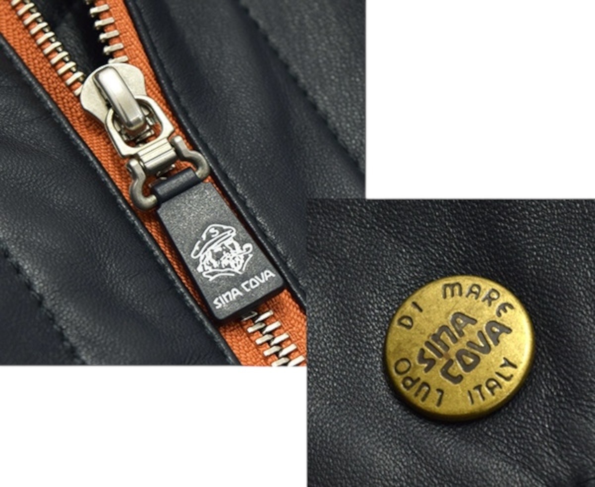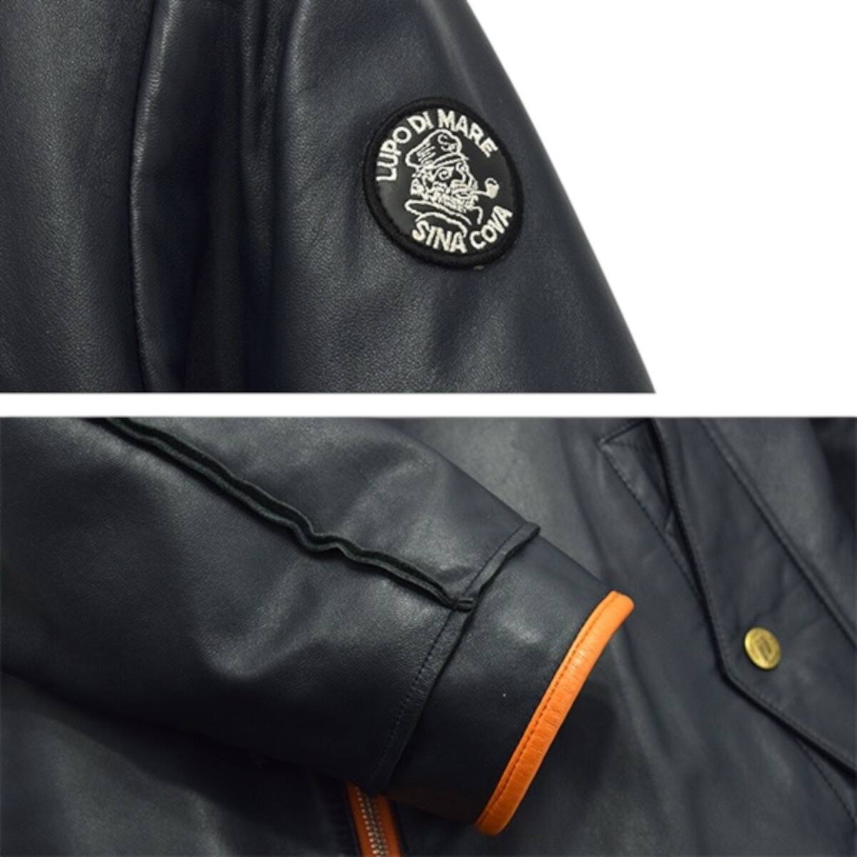 | 商品説明 | 【商品】 極美品 定価12万 SINA COVA シナコバ 船長 ロゴワッペン 極上ラムレザー 中綿 マウンテンパーカー ジャケット L/実寸XL程 黒 羊革 ブルゾン 【商品説明】 SINA COVA(シナコバ)の船長 ロゴワッペン ラムレザー 中綿 フーデッド ジャケットになります。 伊部株式会社の内タグが付属する国内正規品になります。 「LUPO DI MARE・海の狼」と呼ばれる伝説のシーマン”キャプテン・シナコバ”。 彼のライフスタイルを通して生まれたのが、大人のマリンカジュアルブランド「SINA COVA」です。 機能性とスポーツ性、洗練されたエレガンスを有するマリンスポーツウェアとしてイタリアを中心としたヨーロッパの一流文化人、エグゼクティブ達に愛用されています。 マリンのシナコバが変わらず展開続けるフード付ジップUPレザーパーカーです。 使い勝手の良いネイビー×オレンジの好配色が映えるマウンテンパーカー風のデザインにしっとりとして柔らかい皮を袖口と裾部分を配色で切り替えたシンプルな仕上がりです。 程良い厚みがありつつ、人肌のようにキメが細かくしっとりとして滑らかな極上のラムレザー(羊革)が使用された防寒性抜群の高級感溢れる極上の一着。 非常に上質で軽くやわらかい最高級ラムレザーを使用し、実際に触れて頂かなければお伝えできませんが、独特の人肌のようにしっとりと手に吸い付くような極上の触り心地は、他のアイテムとは一線を画す極上のモノとなっています。 上品な艶感・驚くほど柔らかくソフトな肌触りを堪能して頂ける最高級のラムレザーで仕立てられた極上の一着で、レザーアイテム特有の硬さがありませんのでストレス無く着用して頂けます。 シナコバらしい空気を含んだかのようなゆったりとしたシルエットに仕立てられており、ブランドイメージ通りの都会的でスタイリッシュな着こなしを表現して頂けます。 ボディの胸元にはお馴染みのブランドアイコンの船長ロゴワッペン、裏地にも大きく船長ロゴのプリントがあしらわれた豪華なデザインが目を惹くシナコバらしいお洒落且つこなれたデザインに、上質なレザーの表情がプラスされることにより、圧倒的な存在感と風格あるラグジュアリー感を放つアイテムに昇華されています。 縫製や素材にこだわった非常に洗練されたディテールが魅力となったシナコバならではの完成度の高い大人カジュアルな一着です。 デザインは人気の『マウンテンパーカー』タイプですので、スタイリッシュにもカジュアルにもスタイリングが出来る万能デザイン&シルエットで幅広いコーディネートが楽しめる一着です。 あまりレザージャケットを着用されないという方でも使いやすいデザインです。 フロントはジップアップ開閉、ストームフラップ付きの比翼仕立て、フラップ付きのハンドウォーマーポケットが2つ、内ポケットが2つの仕様。 裏地には吸湿性に優れた滑りの良いポリエステルを使用しておりますので、腕通し、着心地ともに抜群の一着です。 機能性をしっかりと兼ね備えた大人の「レザージャケット」に仕立てられています。 左肩にはブランドアイコンの船長ロゴのワッペン、ボタンとジップ引手パーツにはブランドロゴの刻印が施されており、ブランドをしっかりと主張した特徴的なデザインで、存在感のある着こなしを楽しめます。 素材・デザイン・シルエットの全てにこだわり抜かれた、さすがシナコバ!と唸らされるクオリティーの高い仕上がりとなっています。 艶も素晴らしいネイビーのオールレザー仕様、トレンドに左右される事もありませんので一生物として長くお使い頂ける、リッチ感溢れる素晴らしいレザージャケットです。 デザイン面と機能的なディティールは勿論ですが、特筆すべきはその保温性。 中綿には断熱・保温性に優れる最高品質のインシュレーターを贅沢に使用しており、極限の寒さでも体温に包まれているような暖かさを維持します。 どこに行っても上半身は寒さを感じることはありません。 抜群の保温性を誇りながら、美しいシルエットラインを描くその技術力はさすがシナコバ。 防寒保温性に優れ、これからの季節のアウターとして重宝する一着。 シルエットやディテール・パーツなど細部にまでこだわりが感じられ、一着でワンランク上のラグジュアリーな大人のコーディネートが完成致します。 シナコバならではの拘りの作りと、高級感のある仕上がりの一着。 定価では手の出難い非常に高価なアイテムになりますので、本物志向の方は是非この機会にご検討下さい! 【サイズ】 表記:L/実寸XL相当 肩幅:51㎝(肩縫い目間・直線) 身幅:65㎝(脇下・直線) 袖丈:67㎝(肩先~袖先) 着丈:70㎝(後襟下~裾先) (※多少の誤差はお許しください。) 【素材】 表地:羊革 裏地:ポリエステル100% 中綿:ポリエステル100% 【カラー】 ネイビー×オレンジ 【コンディション】 使用感も殆ど無く、まだまだご使用頂ける非常に状態の良い商品です。 これからも十分に着用頂けます。 ※画像を