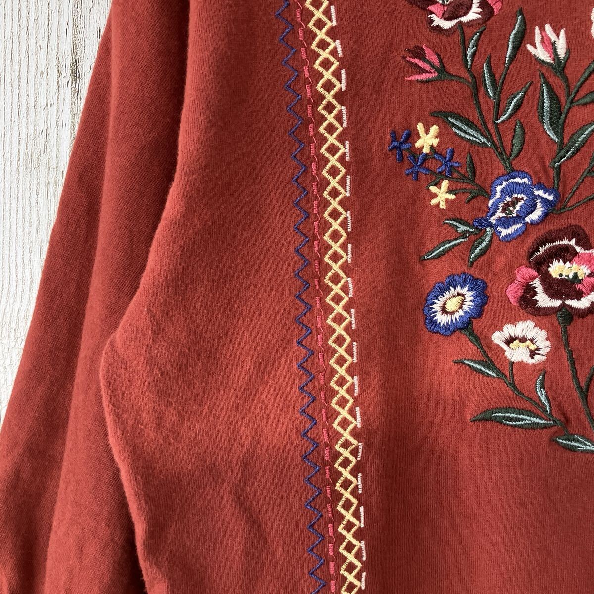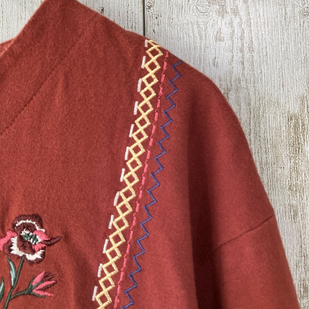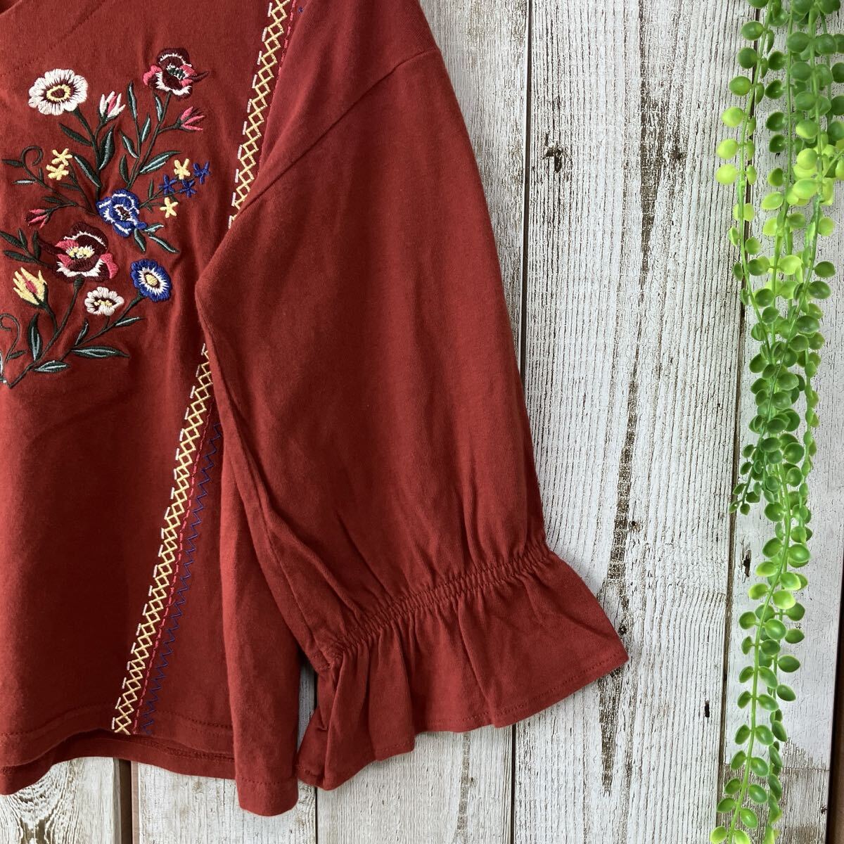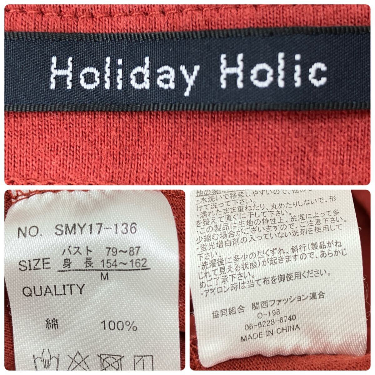 [訳あり]☆Holiday Holic ホリデーホリック☆カットソー ブラウス 花柄 刺繍 フレアスリーブ M スリット Vネック レッド レディース g5835