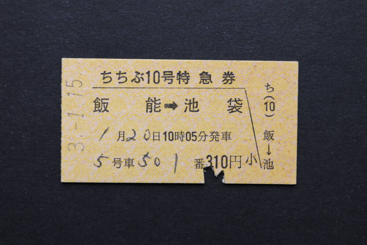 西武鉄道特急券 ちちぶ10号 飯能→池袋 310円