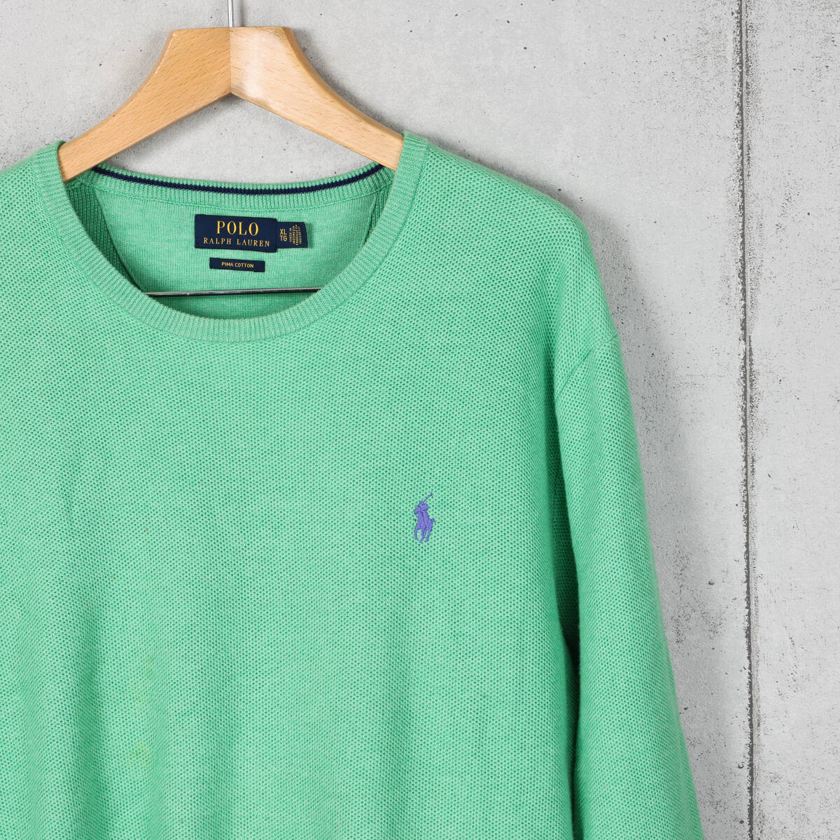 【ブランド】 Polo Ralph Lauren / ポロラルフローレン 【アイテム】 コットン素材 クルーネックセーター 【商品説明】 アメリカで購入しました、ラルフローレンのコットン素材が使用されたクルーネックタイプのセーターになります。 【カラー】 グリーン 【コンディション】 使用に伴う色落ちや擦れなどがあります。 【サイズ】 サイズ:XL 身幅:61cm 肩幅:52cm 着丈:67cm 袖丈:73cm | |||