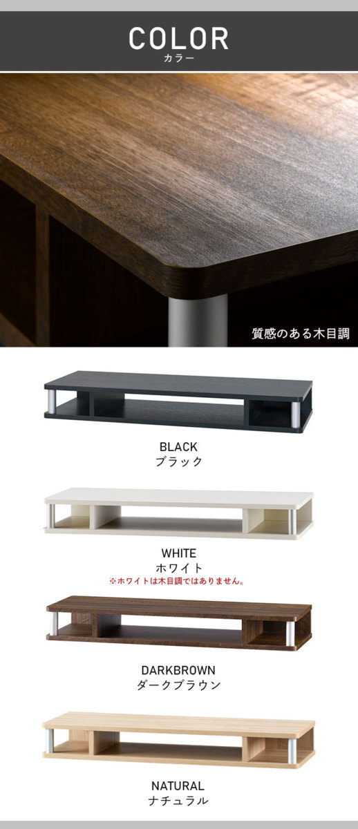 テレビ、パソコンの高さを少し上げたい、買い足しのHDD等をスッキリ収納出来ます。