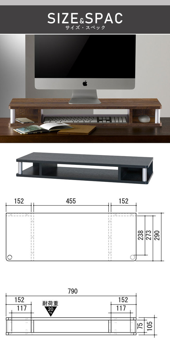 ■耐荷重:[天板]20kg [棚板]5kg