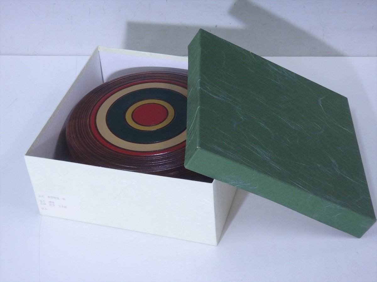 ★美品!木製【棗型食籠 紙箱入り】摺漆 独楽 五本筋 栃 直径21cm 高さ9cm 茶道具 漆器 茶器 菓子器 喰篭