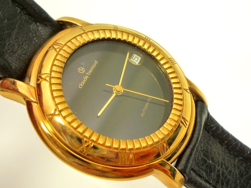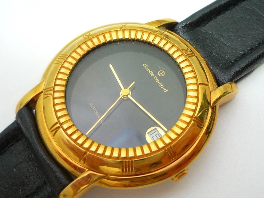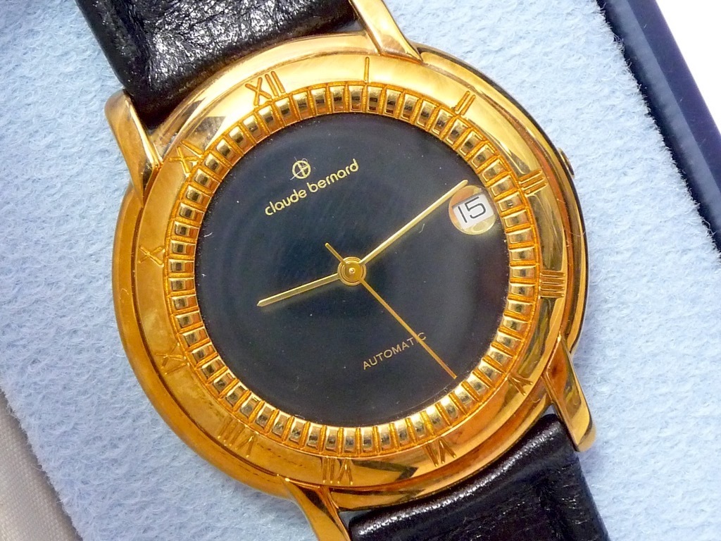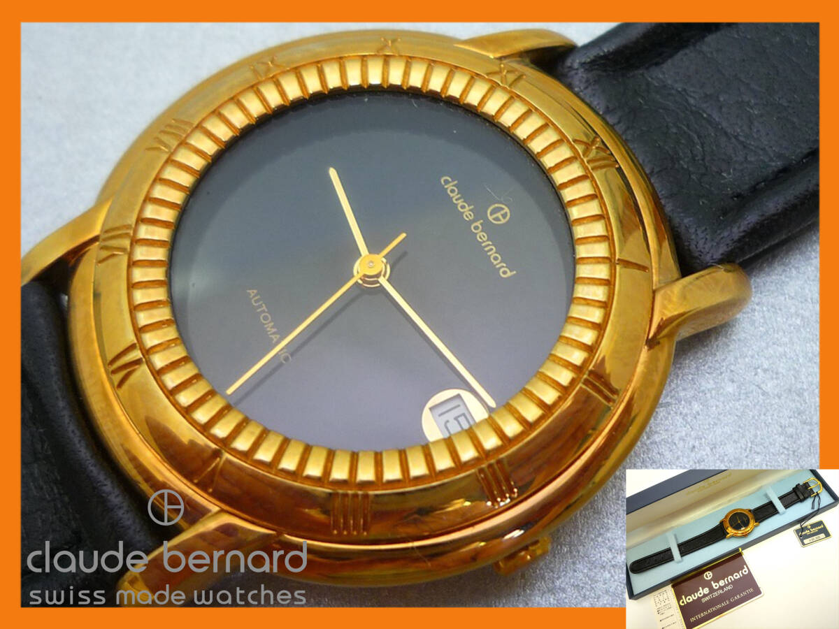 参考88,000円 Claude Bernard クロードベルナール 自動巻き 高級感 腕時計 メンズ スイス製 ベルトレザー 本革 ブラックxゴールド 箱 _C5