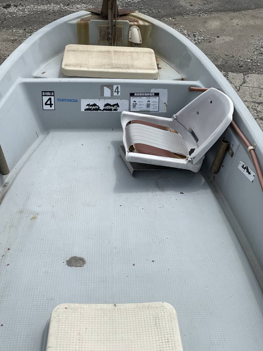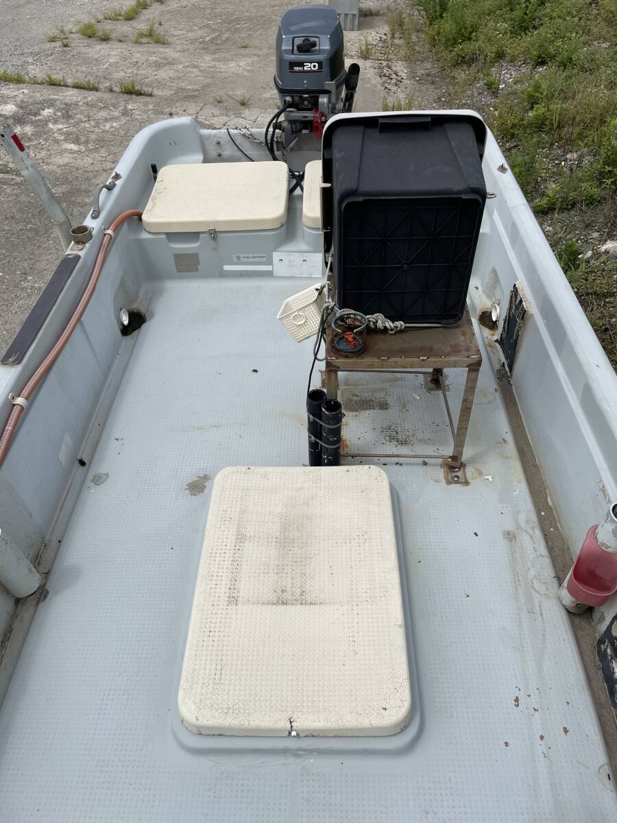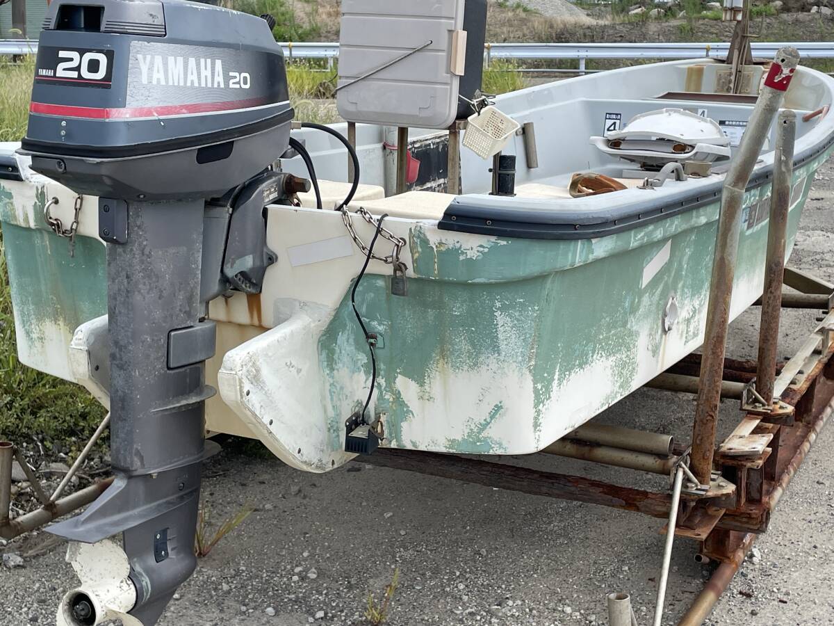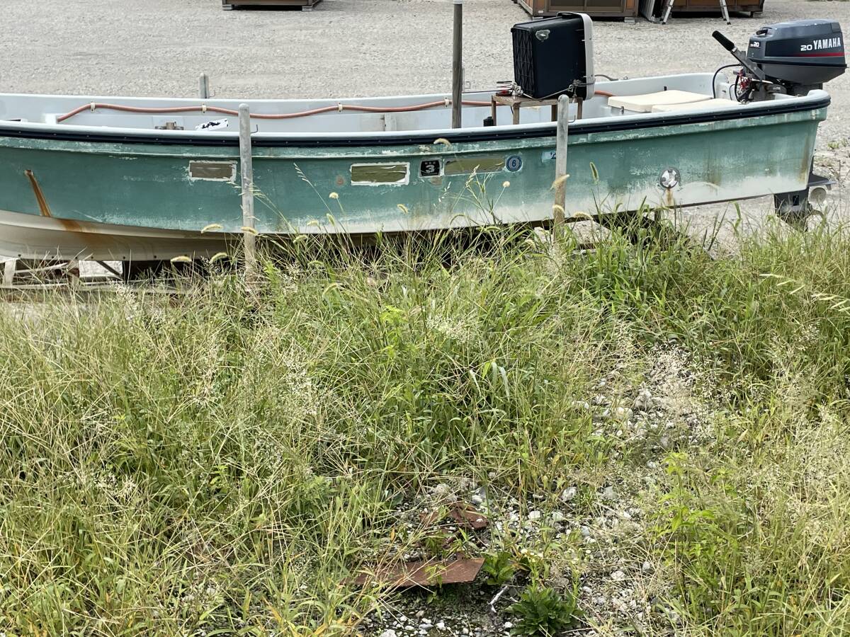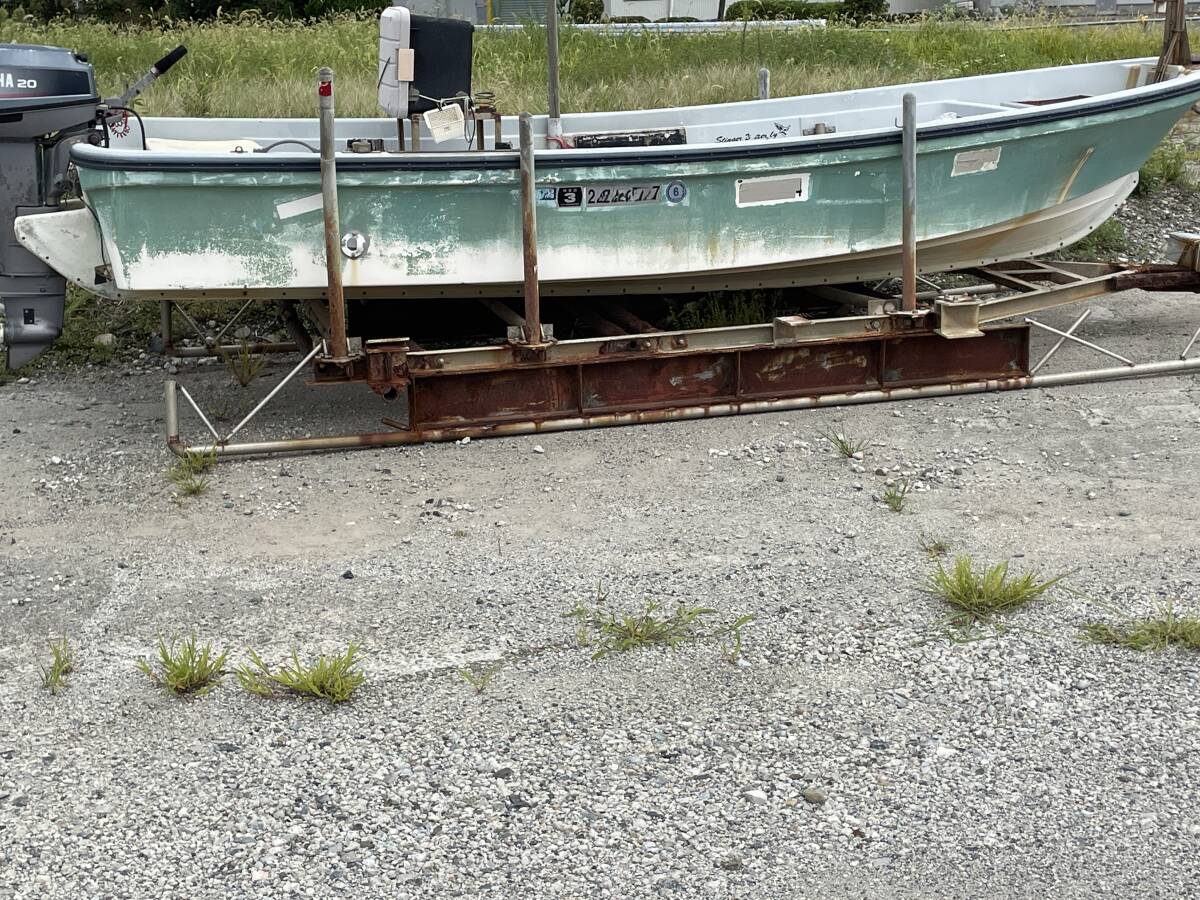 実働品です、小型兼用船で登録されてたため現在抹消登録されてます 現在船検は付いてません こちらの動画と写真もご覧下さい バッテリー:まだまだ使用可能 エンジン:一発で始動してます、動画をご覧ください 写真5番目のレバーが外れてます 船台は錆多いです、必要な場合は残しても構いません 引取希望ですが近県の場合は配達も可能です、気楽にご相談ください