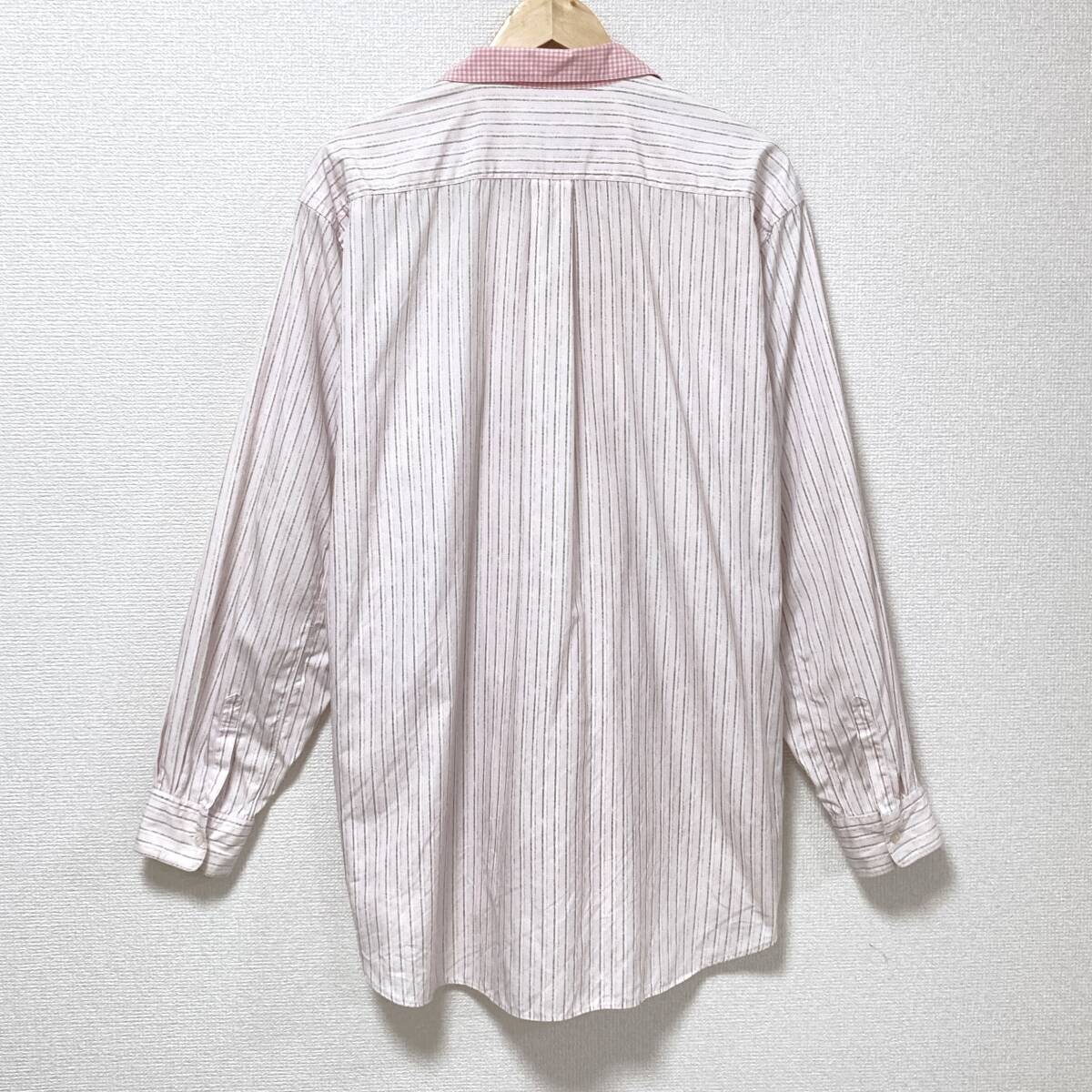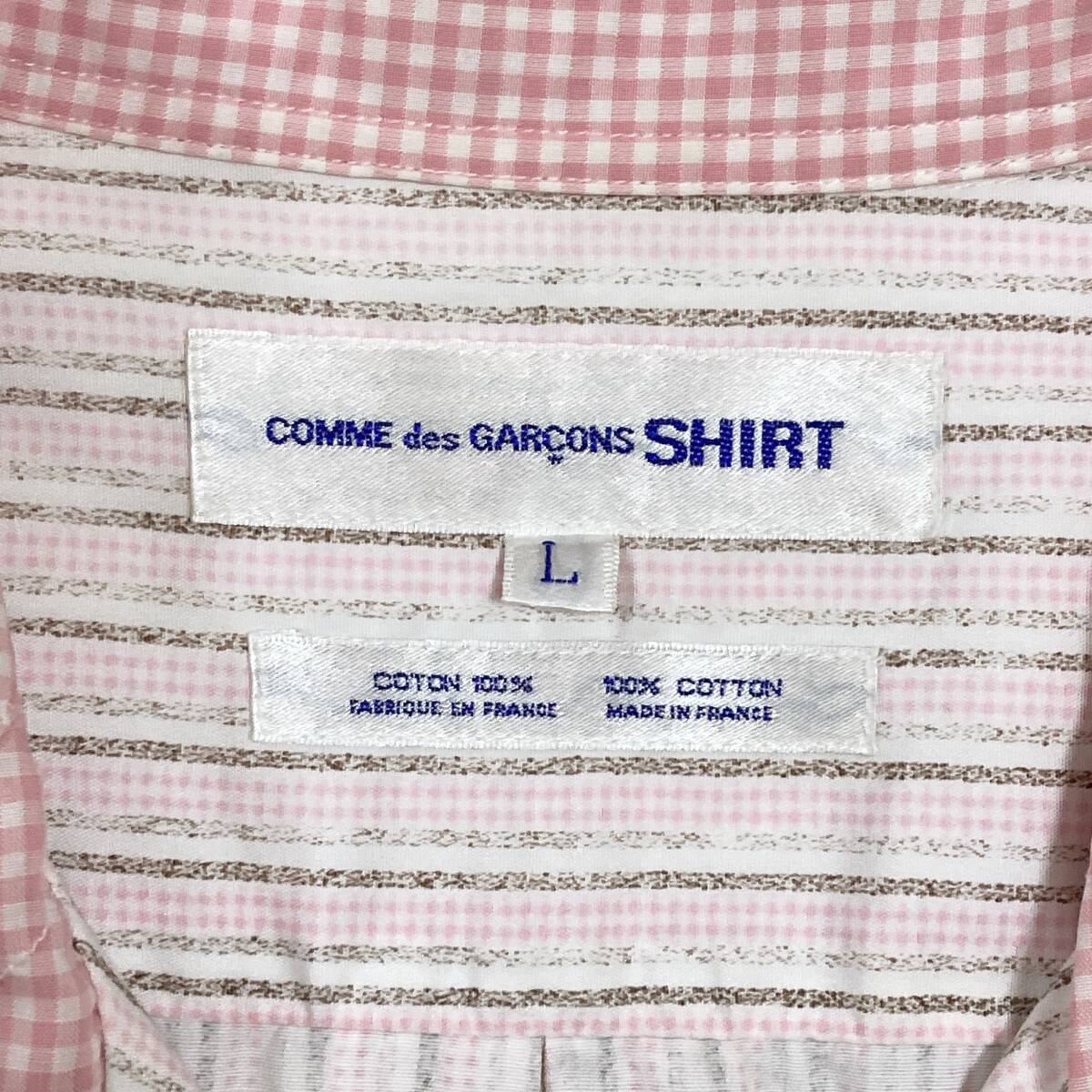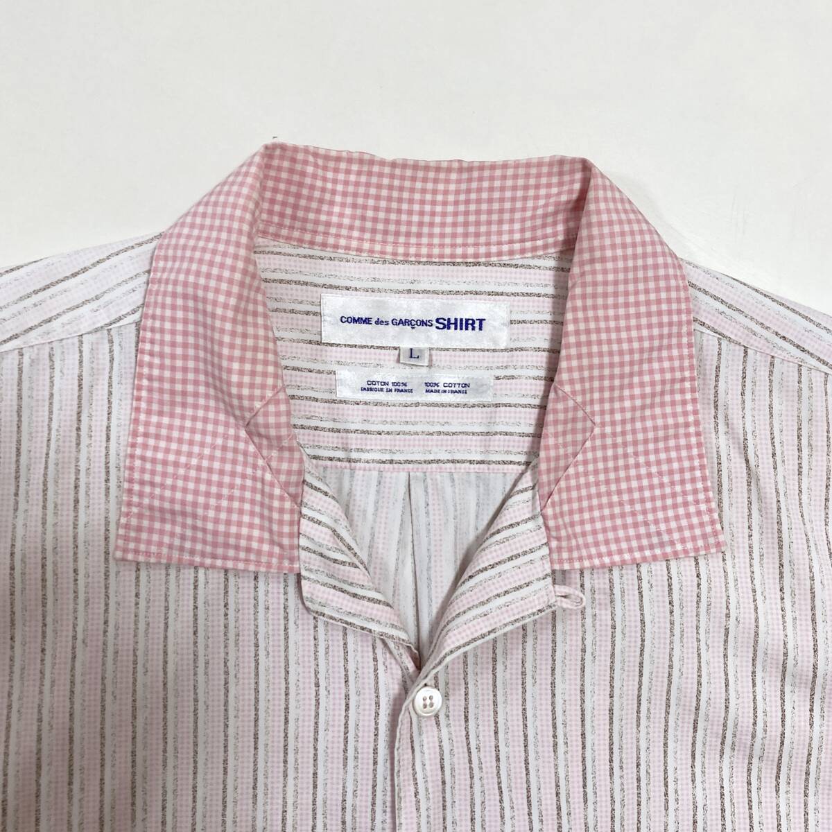 80s COMME des GARCONS SHIRT 開襟 長袖シャツ ストライプ チェック ピンク × ホワイト × ブラウン