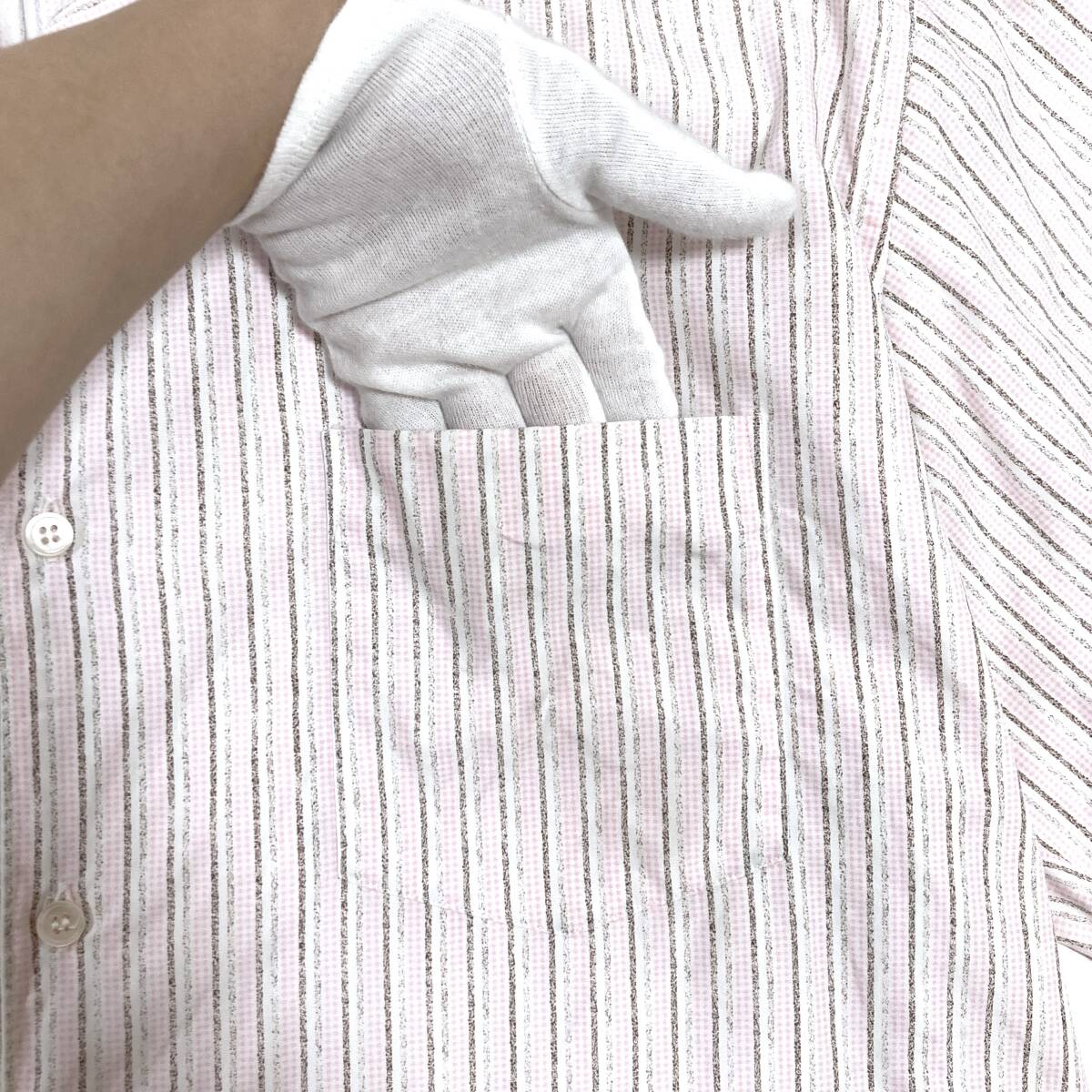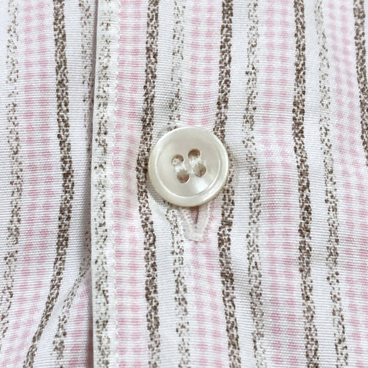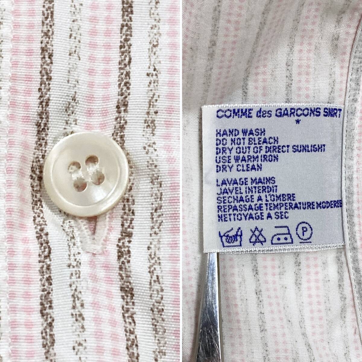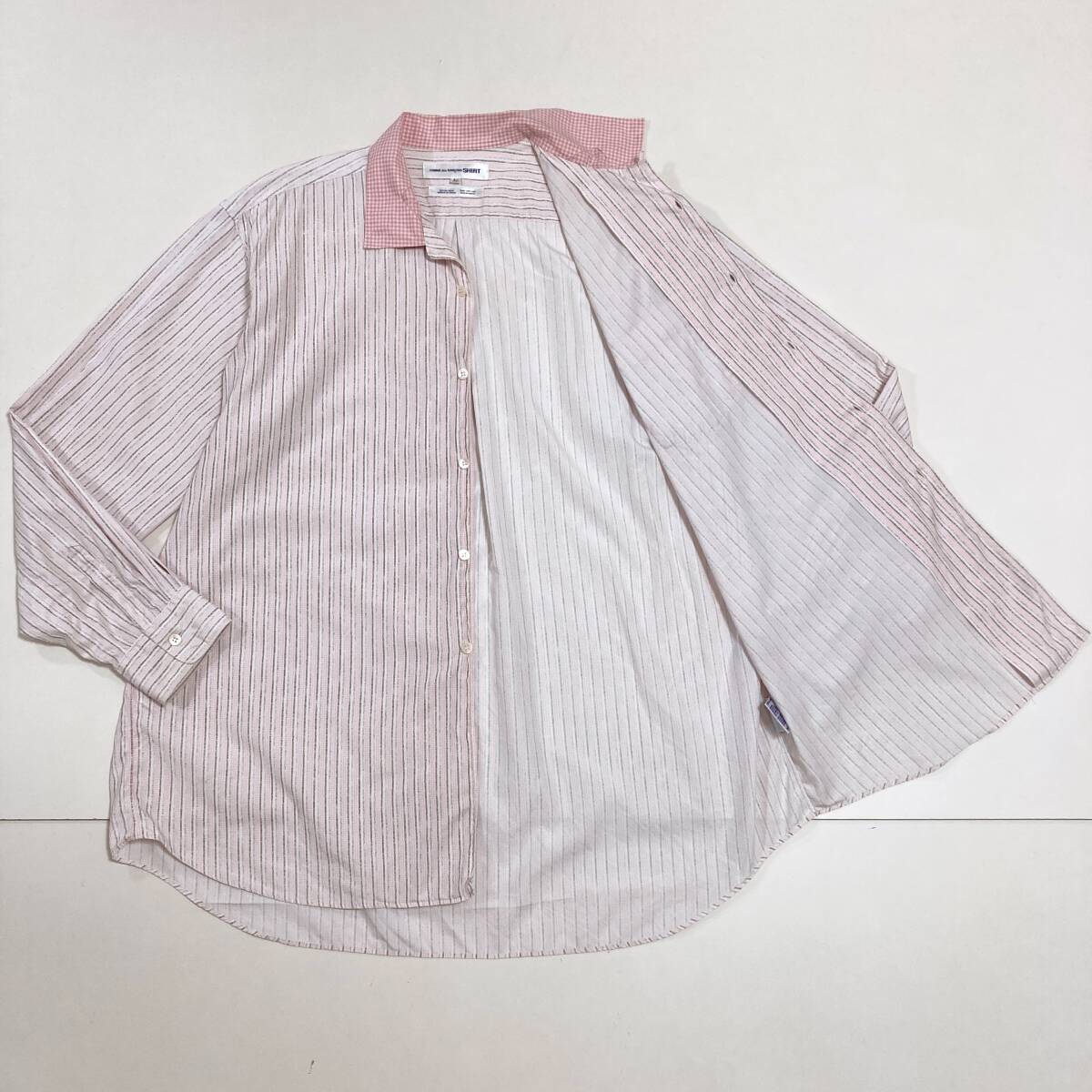 80s COMME des GARCONS SHIRT 開襟 長袖シャツ ストライプ チェック ピンク × ホワイト × ブラウン