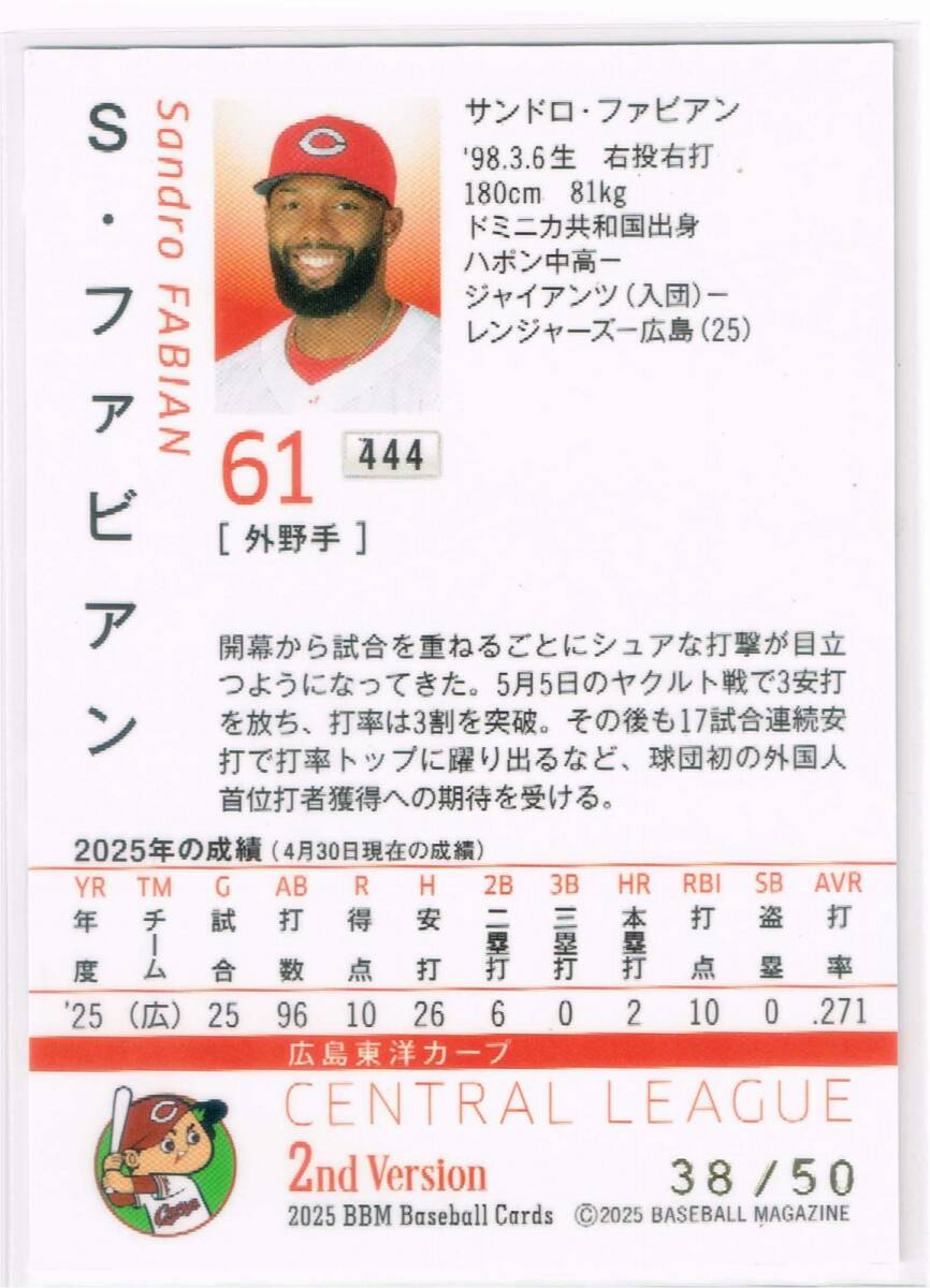 2025 BBM ベースボールカード セカンドバージョン ホロ箔サインパラレル #444 広島東洋カープ サンドロ・ファビアン シリアルナンバー 38/50 です。 サイズは89mm × 63mmです。 カードはスリーブ、またはトップローダーに入れて保管しております。。一般的な常識の範囲内で保管しておりますが、初期傷や経年による自然劣化などはご容赦ください。過度に状態を気にされる方は入札をご遠慮ください。 当方、喫煙者はおりません。 その他、何かご質問がございましたらお問合わせください。 | |