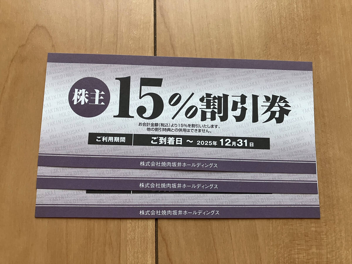 焼肉坂井ホールディングス 株主優待 15%割引券×3枚
