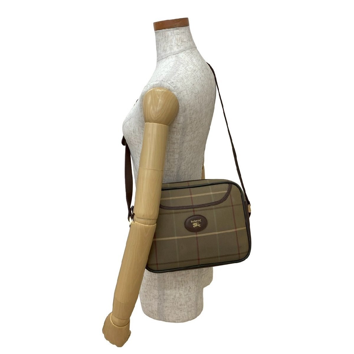 極 美品 Burberrys バーバリーズ ヴィンテージ ノバチェック 柄 シャドーホース ロゴ キャンバス レザー ショルダーバッグ ブラウン b54-9