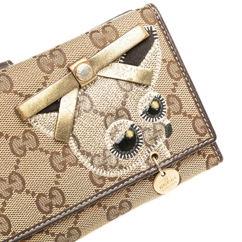 グッチ GGキャンバス グッチョリ チワワ 犬 モチーフ 長財布 226154 ベージュ ブラウン キャンバス レザー レディース GUCCI 【中古】