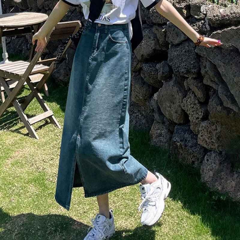センタースリットで抜け感を演出しつつ足さばきも◎、大人な印象を与えてくれるタイトデニムスカートです。