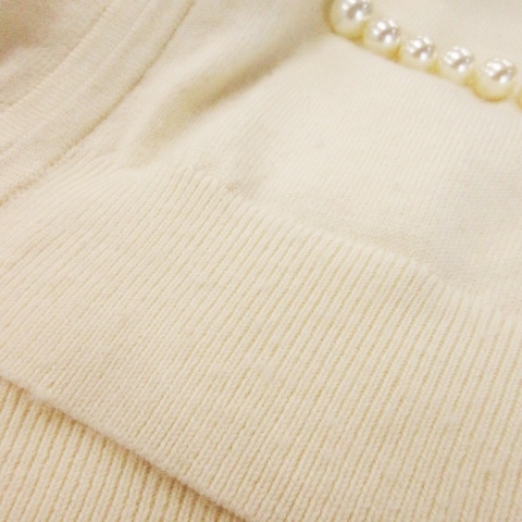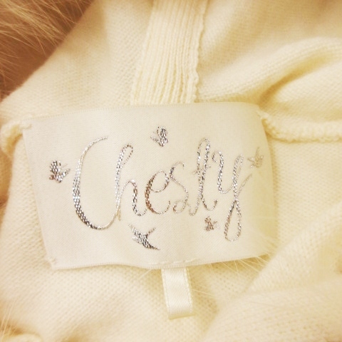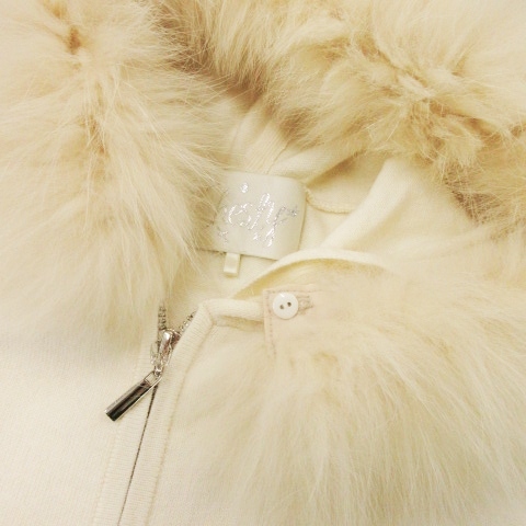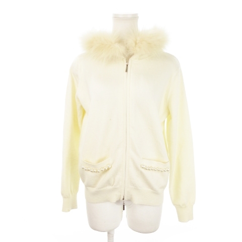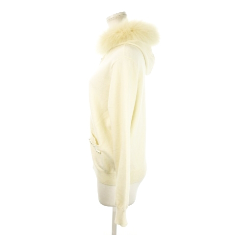 チェスティ Chesty ジップアップパーカー ニット 長袖 フーディ フェイクパール フォックスファー付 毛皮 F ベージュ /MN17 レディース